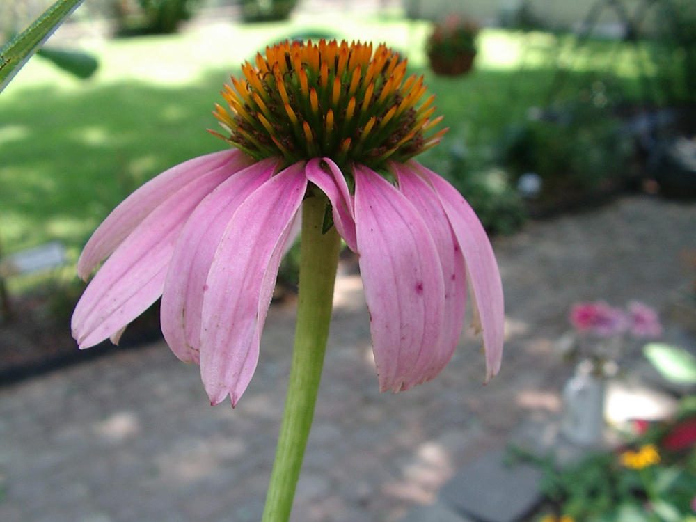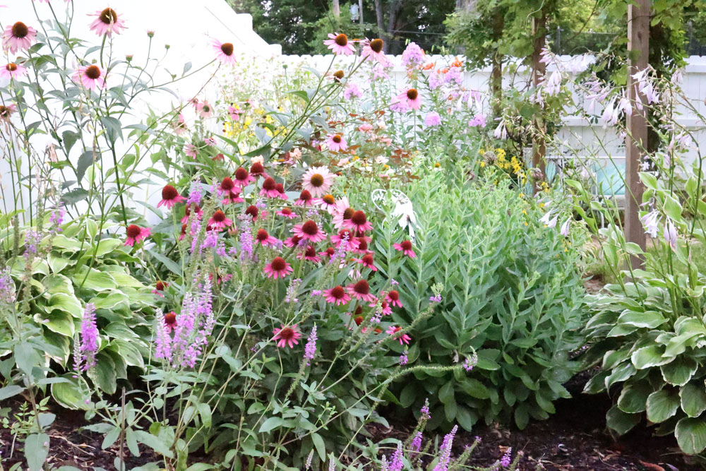 2. Echinacea purpurea - a beautiful mid-height purple one on the right side of the walkway. It seems perfect where it is at. I believe I planted it in 2022.
