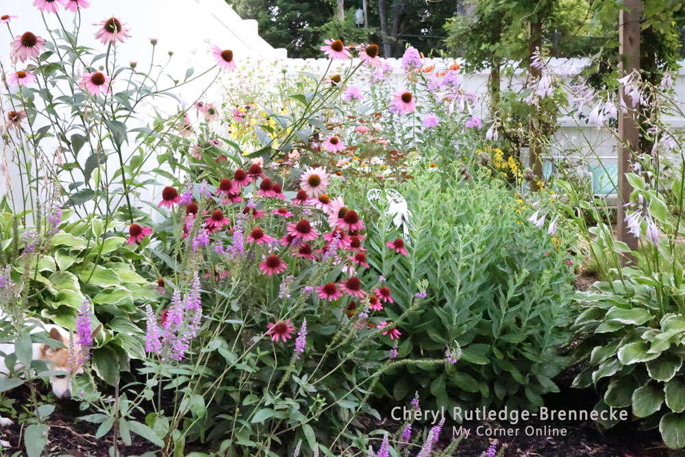 I absolutely love this series of photos as the garden was so beautiful! I put some of this series of photos on other pages for other flower types. Many of these flowers are gone and I want to get this scene back! The rabbits got the short dark pink and white coneflowers. I tried to save them but could not. Now I am going to start putting inexpensive mesh trash cans from the dollar store over my coneflowers in the Spring until they get too tall for the rabbits to devour.