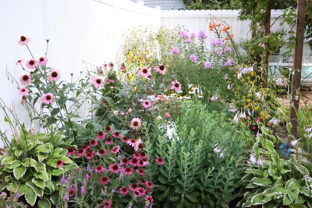 8. Echinacea purpurea 'Delicious Candy' is the bright pink one. You can see the white one that I purchased at the same time in the middle area.