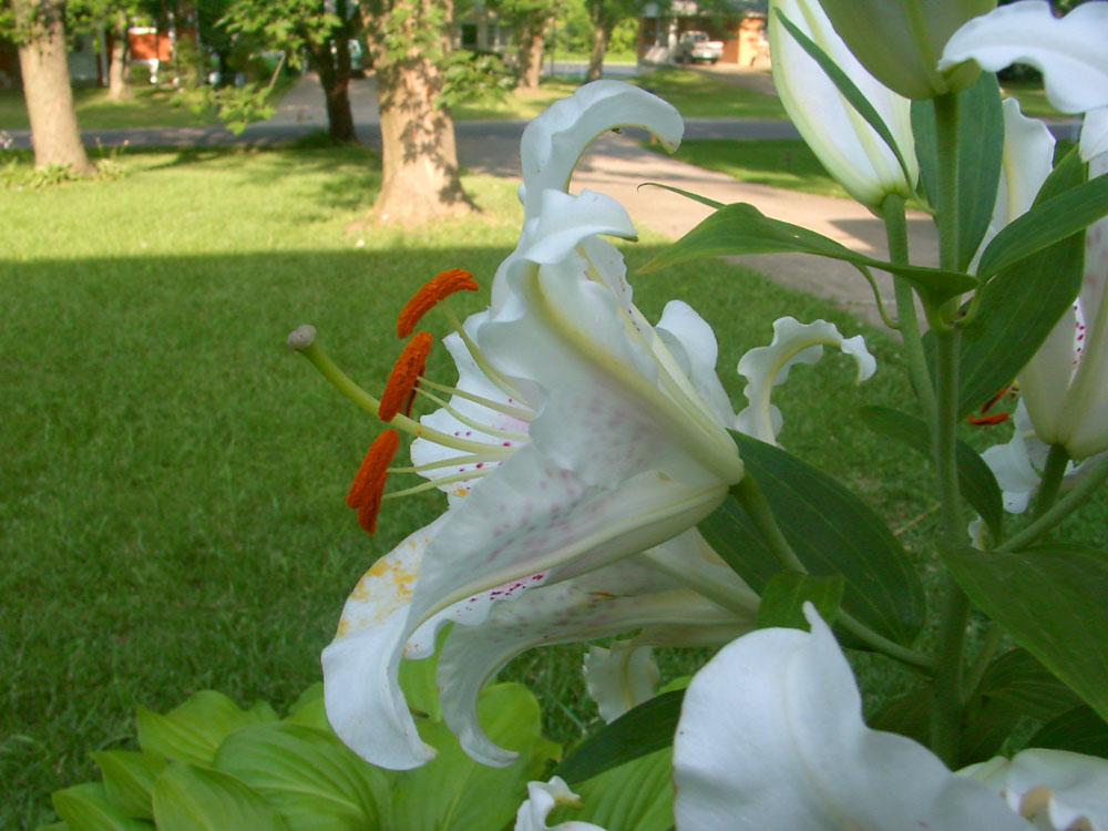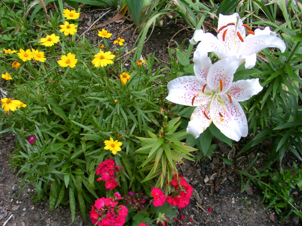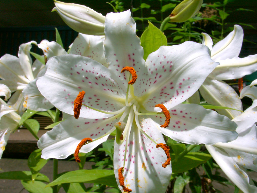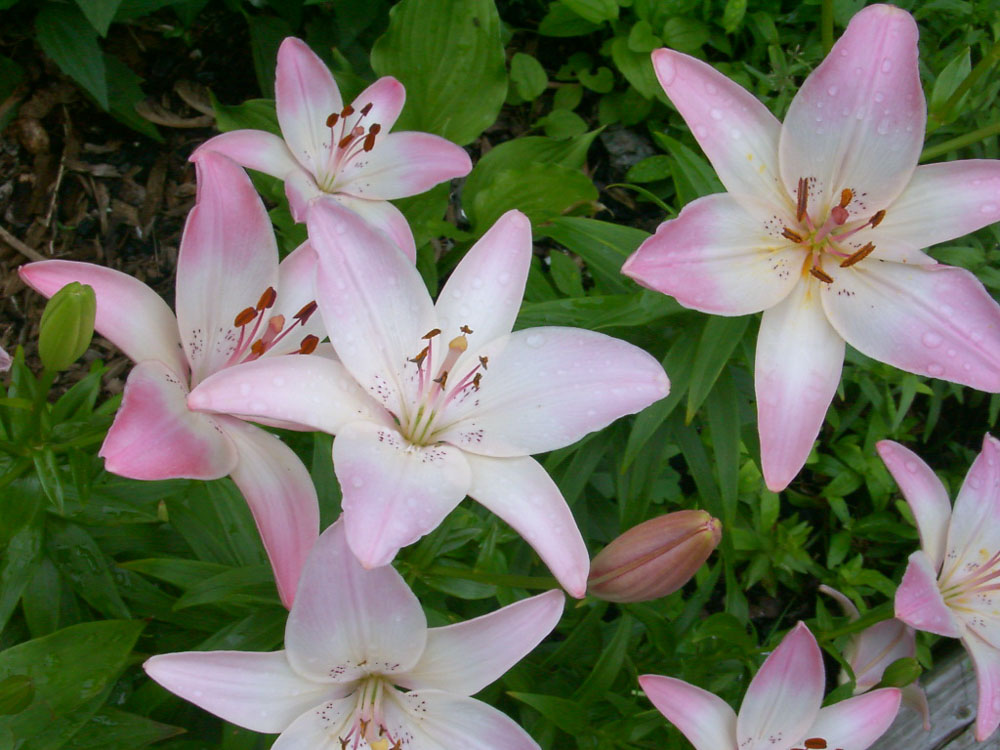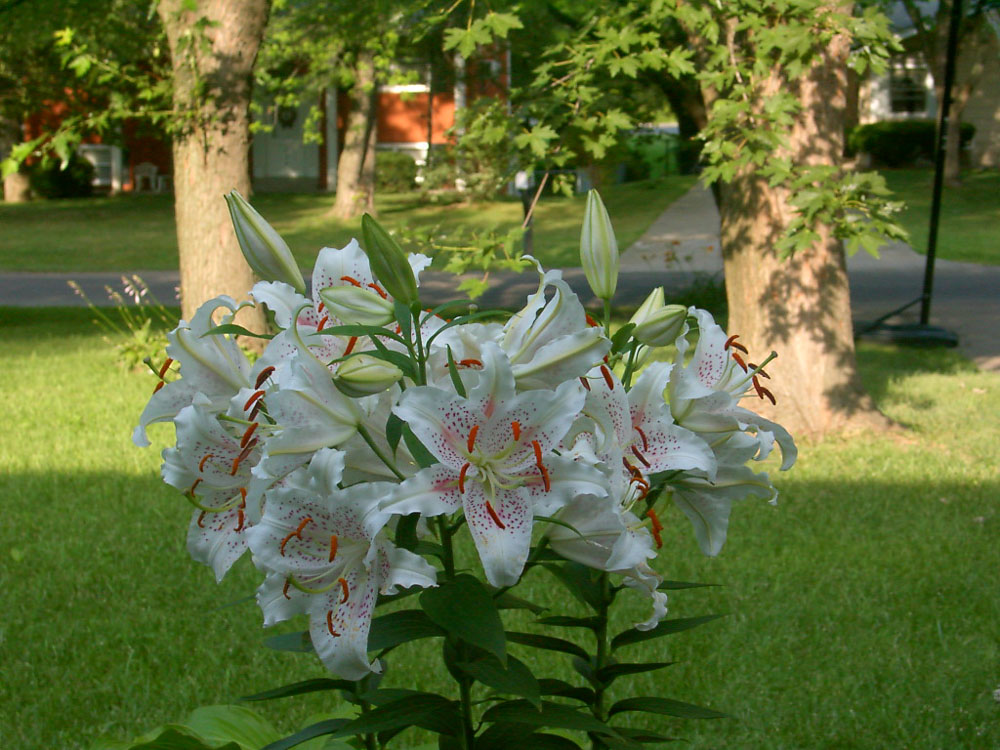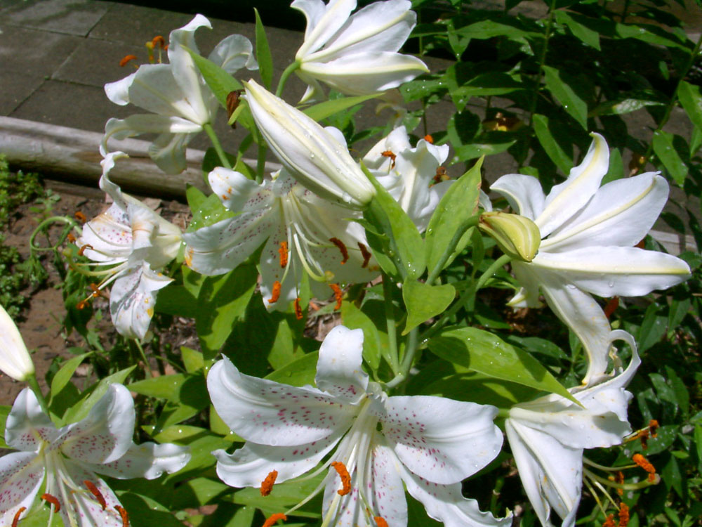 The Oriental Lily is similar, but it blooms in late Summer, is fragrant, and is taller; the Asiatic Lily blooms in late Spring and early Summer and has no fragrance. The common pink "Stargazer" is an Oriental Lily. I think I had the Stargazer variety long ago as I have photos below in 2001 through 2011.