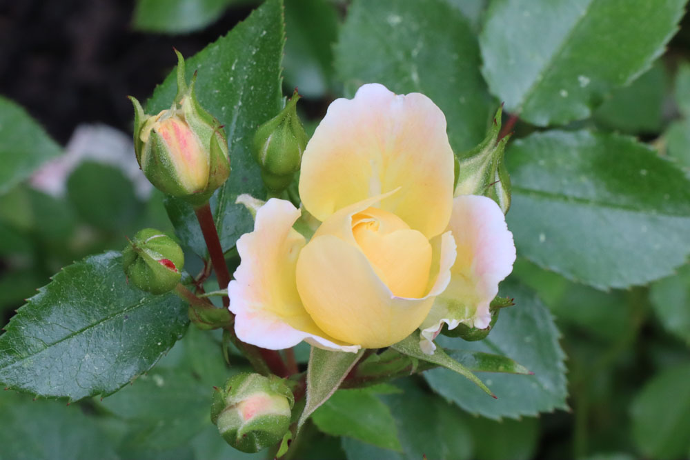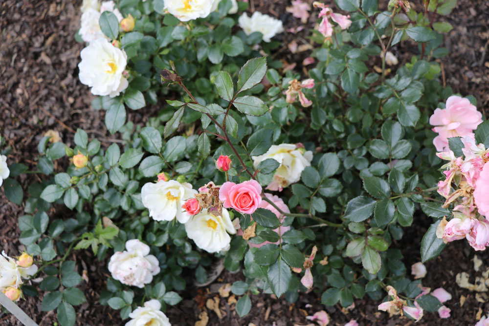 I bought at the now closed Sunny Hill Gardens in 2019 an Apricot Drift Rose and a Popcorn Drift Rose as they told me they would stay small and short, and that I could plant them next to each other and they would grow into each other creating a bi-color rose bush. Sure enough it worked and I absolutely love them. I get many compliments on them as well. I like that they are a subtle muted color in the garden. I also love to eat popcorn so a Popcorn Rose seemed so appropriate for me. The flowers have a buttery color to them that fades to a creamy white which are totally lovely.