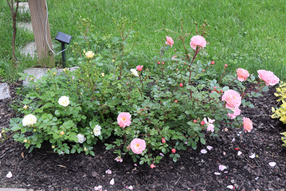 In 2023 I decided to buy another set for a different area and purchased a Coral Drift Rose and a Popcorn Drift Rose at Lowes. During the first year they have been performing very well. The Coral is much brighter than the Apricot, so each set has their own personality, with one being lovely, soft, romantic, charming, and calming, and the other being dramatic, complimentary contrasting, vibrant, and eye-catching.