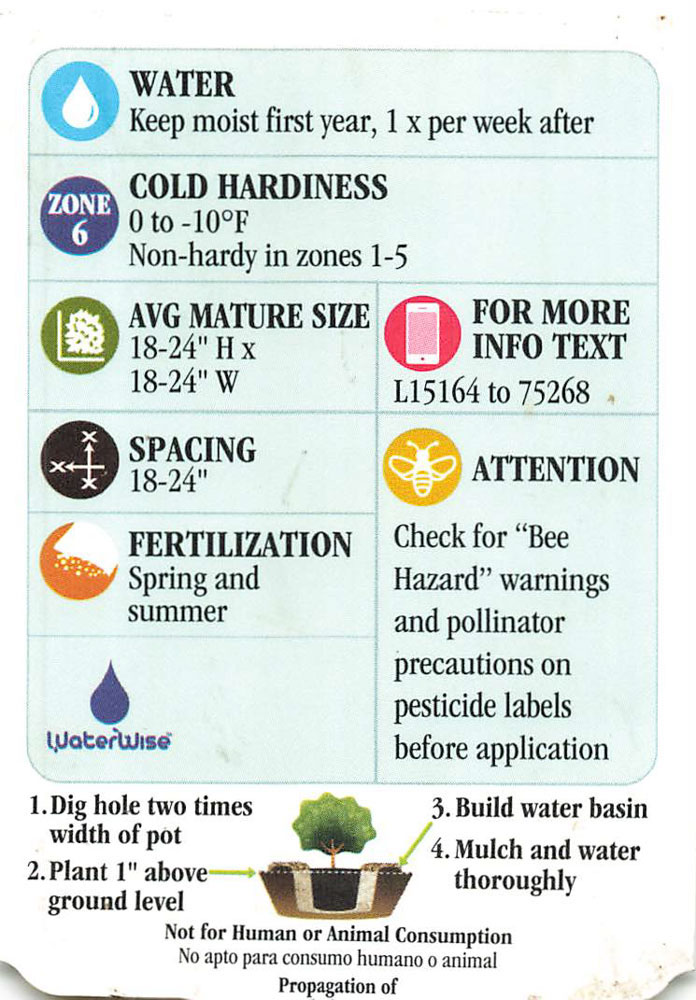It was MUCH smaller in this garden bed before I moved it in 2024. This is closer to the 18 inches on the tag.