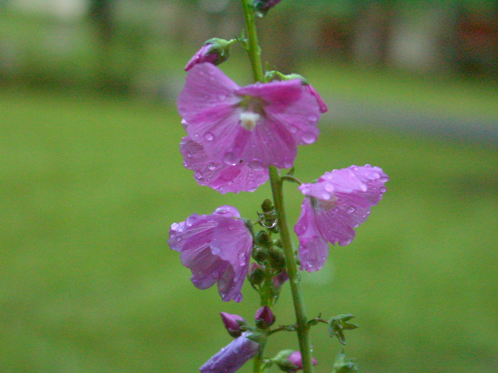The flowers look like miniature hollyhocks of the mallow kind to me, which I love the idea of in that it seems a perfect cottage garden flower.