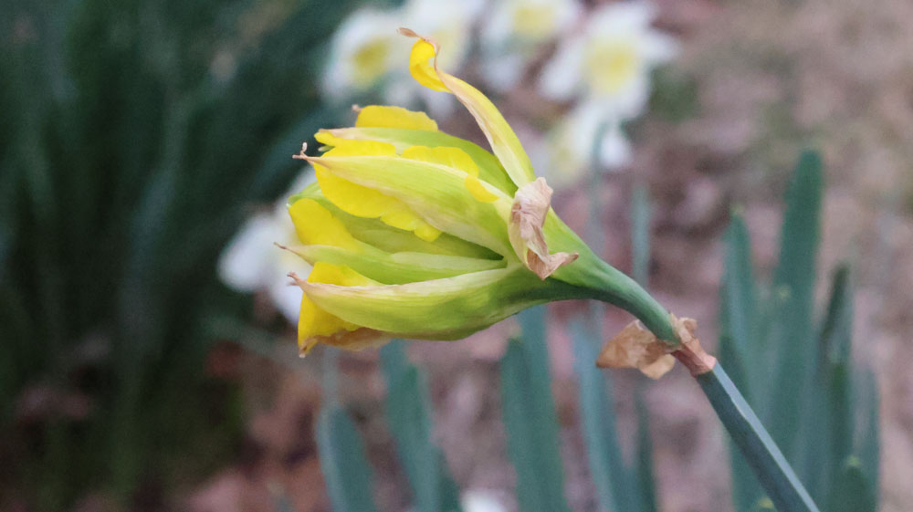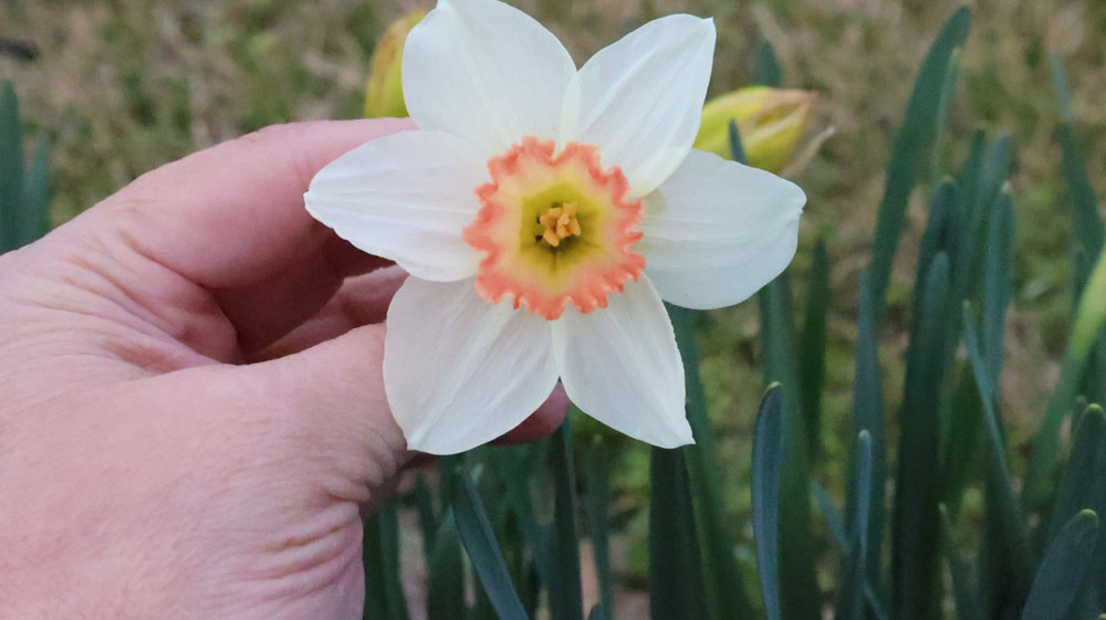 While beautiful, it struggles to open up completely. I am in zone 6b (now 7a) and in colder zones I read it opens up just fine. With my zone having moved up some, this does not forebode well for the Daffodil in my yard. It struggles to open up and I thought there was something wrong with it all these years, but it actually is just what it does! So if you get one to open up all the way, how special is that!