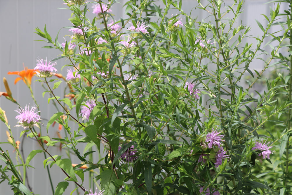 1. Monarda fistulosa | Wild Bergamot - This is when we had it in the raised bed and it was super tall higher than the fenceline! I learned that I did not like how tall it grew.