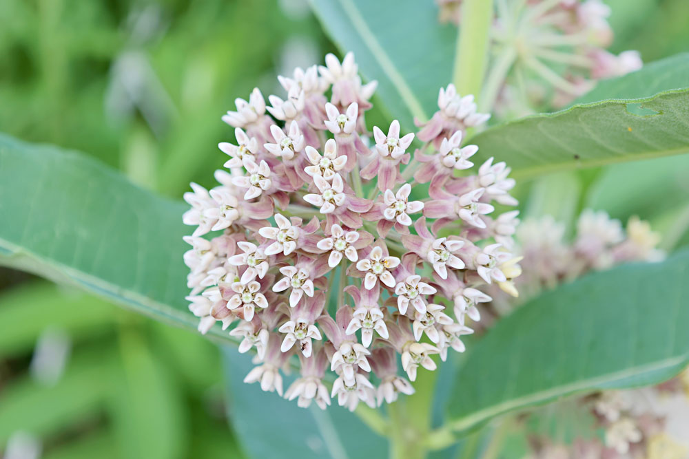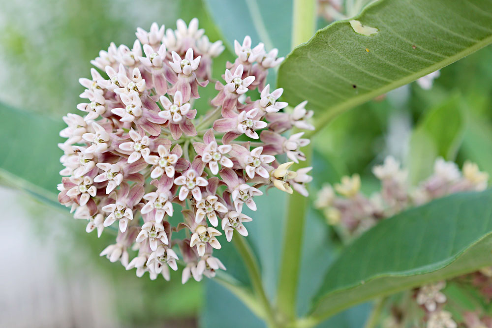 Asclepias incarnata (in-kar-NAH-tus) is known as Swamp Milkweed and is native to Missouri; small rose-purple flowers; also known as Pink Milkweed