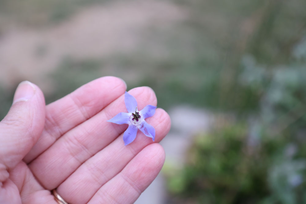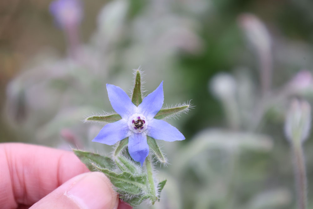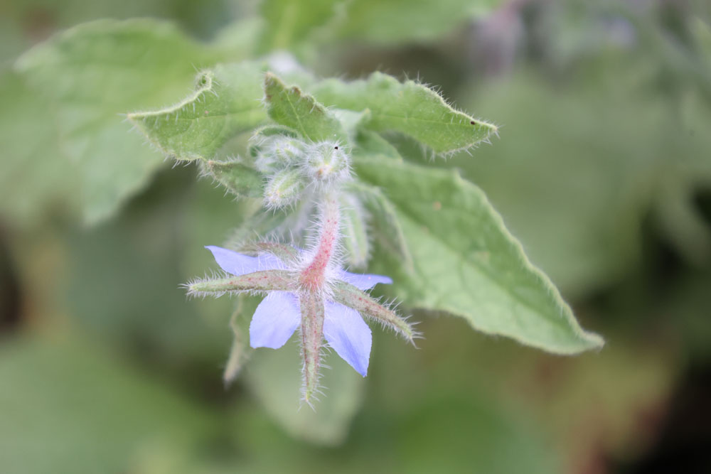 The word "borago" is from the Latin words "burra" meaning a “shaggy garment,” and "ago" meaning “like,” which refers to the hairy foliage.