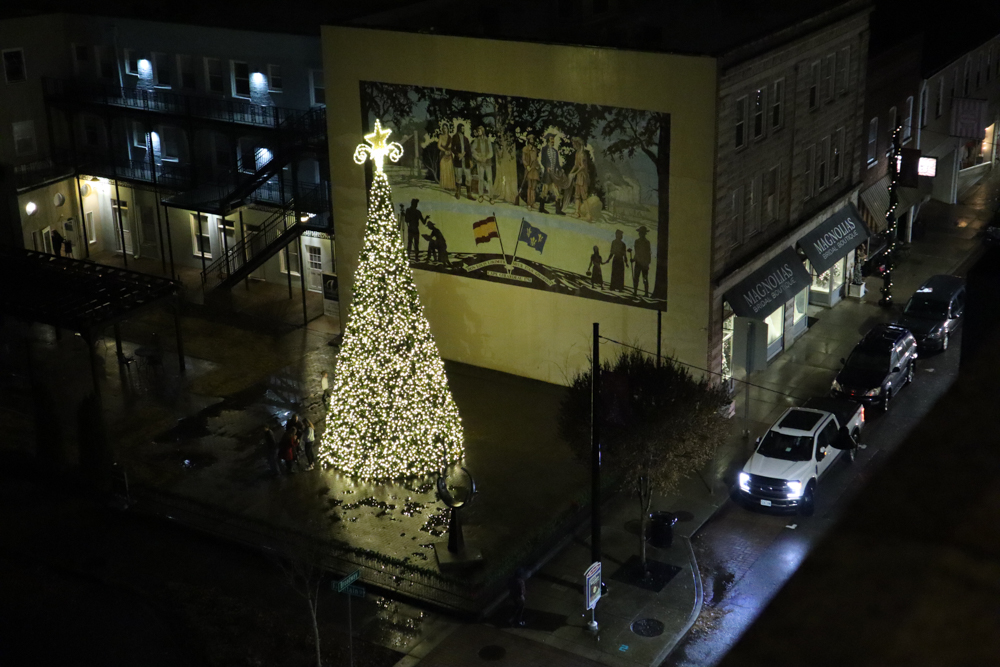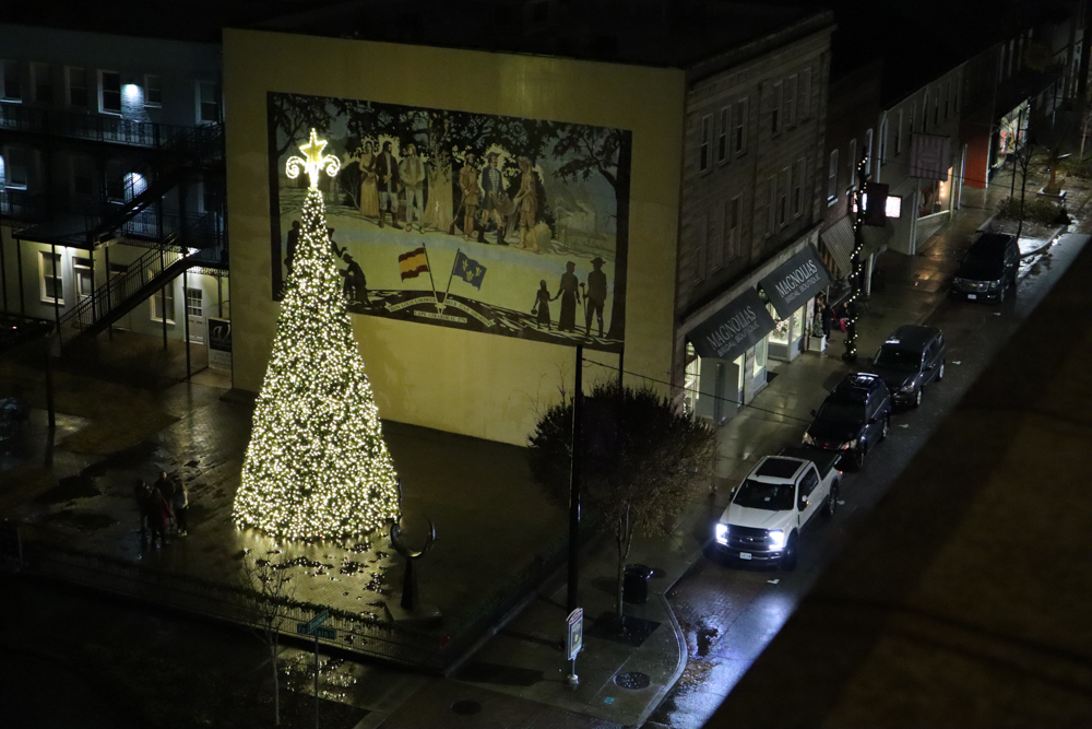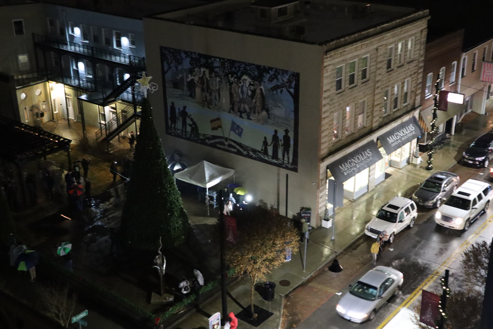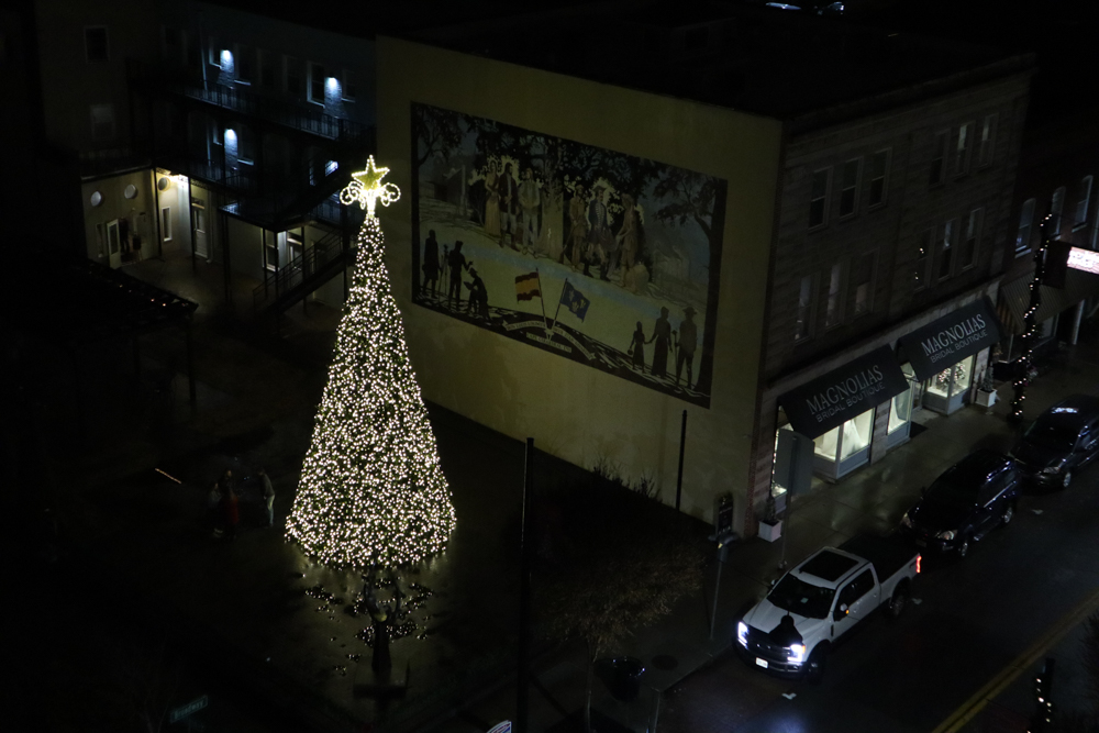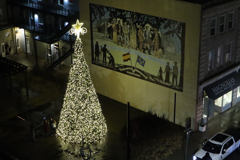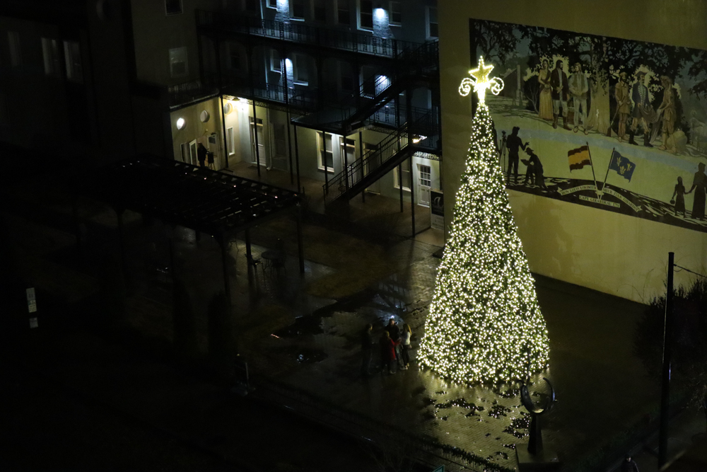 We watched the first lighting of the Christmas tree in Cape Girardeau at Vasterline Suites courtyard on November 29, 2019, from the Top of the Marq.