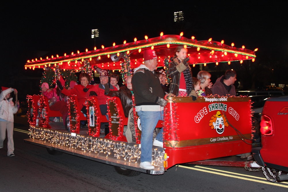 Every year Cape Girardeau enjoys a Parade of Lights down Broadway towards the Mississippi River from Capaha Park to Main Street. It is always held the end of November or early December.