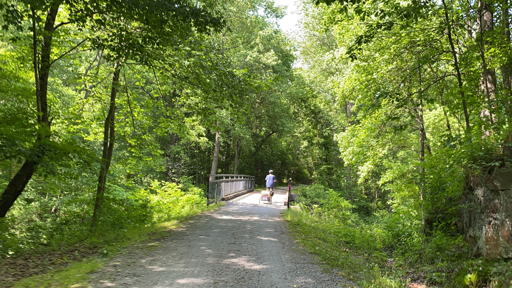 The first time I rode the trail was with Troop 11 Boy Scouts and we took the north trail out of Vienna. Someone stayed back and met us at the stop 10 miles out so that we did not have to go back. I remember how hard it seemed for me on a regular bike, but I did hang in the back with the slower riders as the adult bringing up the rear, so often I had to get my momentum and speed built up again. It was great fun though and I really enjoyed creating and watching the above video as it made me laugh and smile.