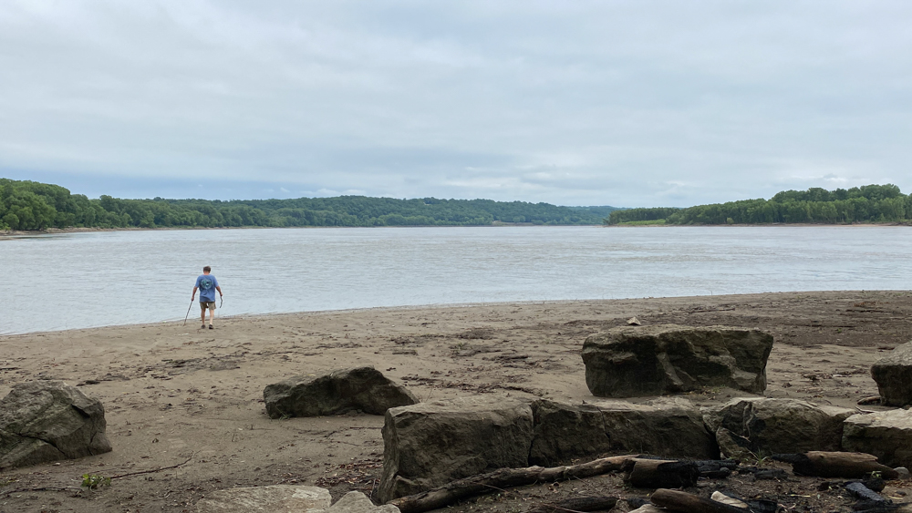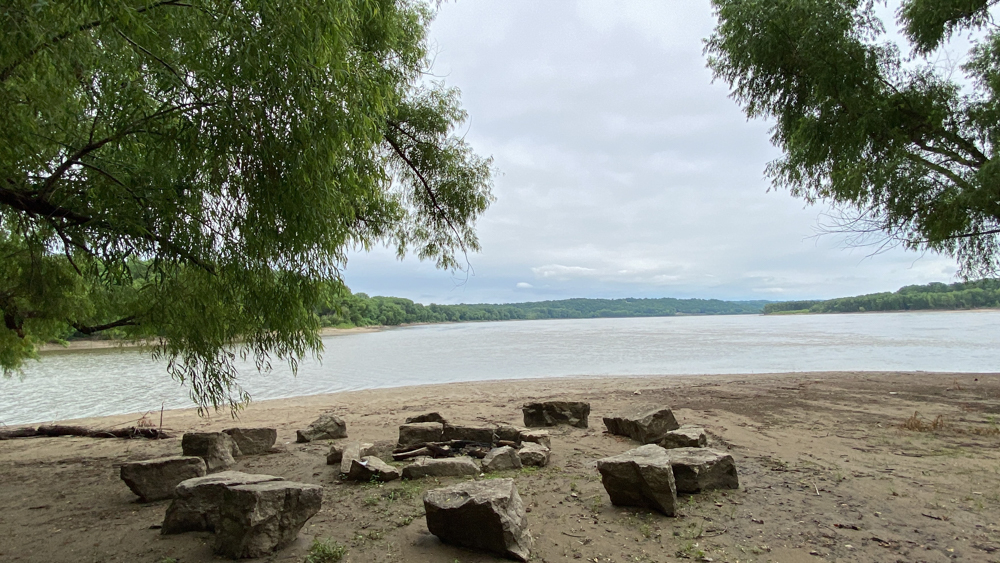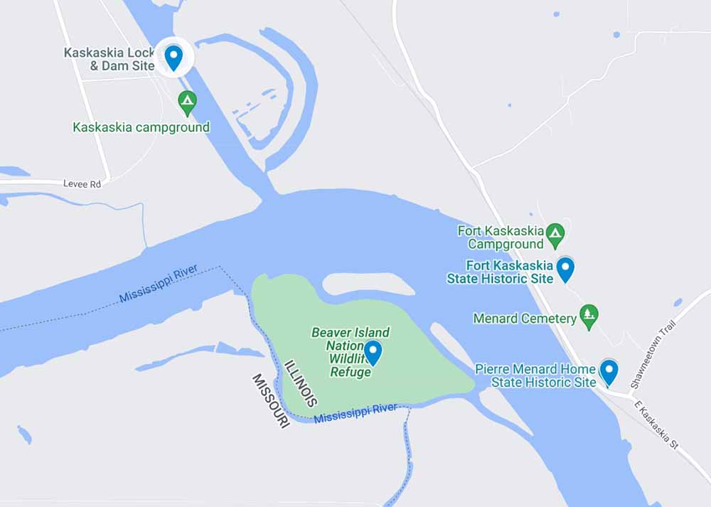This map shows why I was excited for genealogical purposes to randomly have found this location. Beaver Island is where my ancestors live in Old Kaskaskia that was lost due to the changing courses of the river. It is often mostly under water. From the Missouri side, you can almost get to it from Kaskaskia Illinois, which is the a bit if the State of Illinois on the Missouri side of the river. You see on the map the Pierre Menard Home State Historic Site which is where a ferry existed to take folks back and forth across the river to Old Kaskaskia before the water moved. You see Fort Kaskaskia State Historic Site and overlook which is where you can see Beaver Island from above. Also between the Fort and the overlook is a cemetery where many of the dead from Kaskaskia were moved to due to the flooding and the moving rivers. So I was excited to be able to see the same location from a different angle and from ground level. You can sort of see Old Kaskaskia from many places, but not really quite!