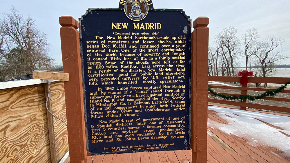 Most people have heard of the New Madrid Fault Line, especially if you life in Missouri. This fault extends 150 miles and goes into 5 states. It's that line where a big earthquake is most likely to happen and damage would be felt into many states. While we were there to visit the Hunter-Dawson State Historic Site, we decided to take a short tour of the town. It was a cold and icy and windy day on February 4, 2023, so our exploring was limited. In addition, we had other places to be. We went into the museum, but it was $5 a person and we decided we did not have time to watch their presentation and go through the museum, but the lady was kind to chat with us. In the winter of 1811 and 1812, there was a huge earthquake and the Mississippi River ran backwards. I am sure you can learn so much about this history in the museum.