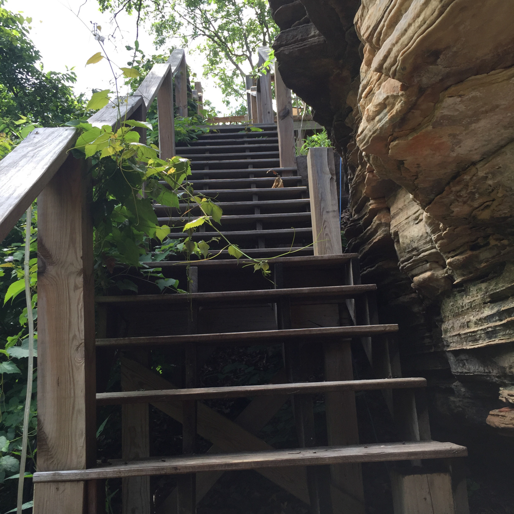 There were some steps and a way to go down to the edge of a cliff. We were told to do at it our own risk and so we did. It was a little dangerous. It had potential if the area would be built up to make it safer. It was dirty and a little bit odd to be sitting on the edge of this cliff.