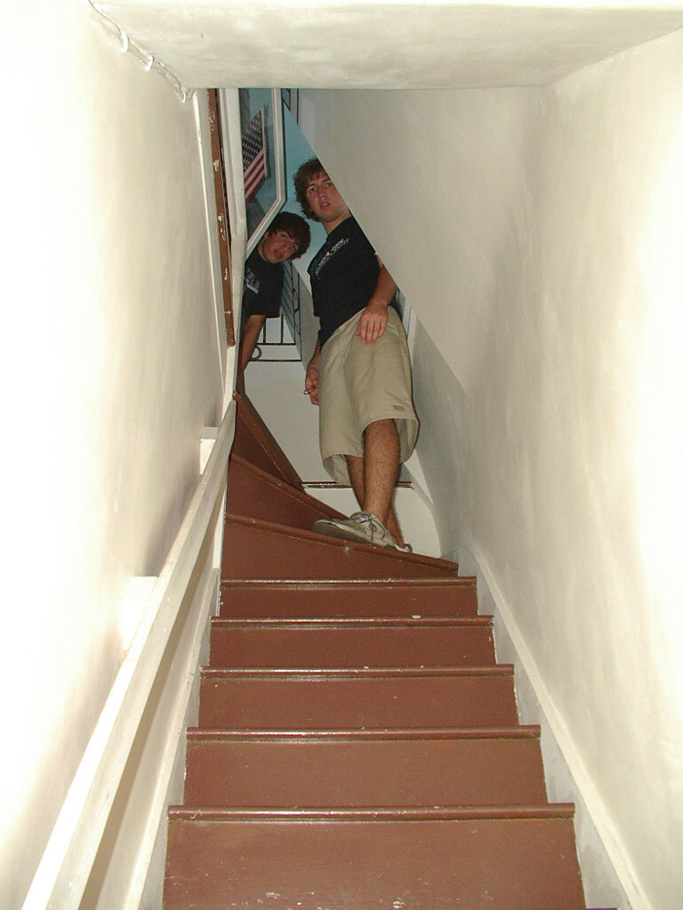 We did climb all the way up to the tippy top of the Mansion and the room was so small this was the only way I could get a photo of it. He is standing in front of the window and below is what you see out the window.