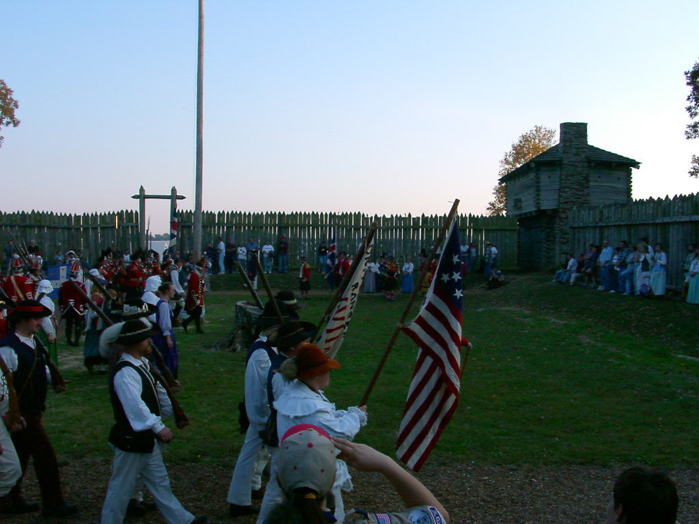 These photos are from the renactment at Fort Massac State Park in October 2001, when our sons camped there with the boy scouts. This historic park is located at 1308 E 5th St, Metropolis, Illinois. The renactment is an annual event at this replica of an1802 fort.