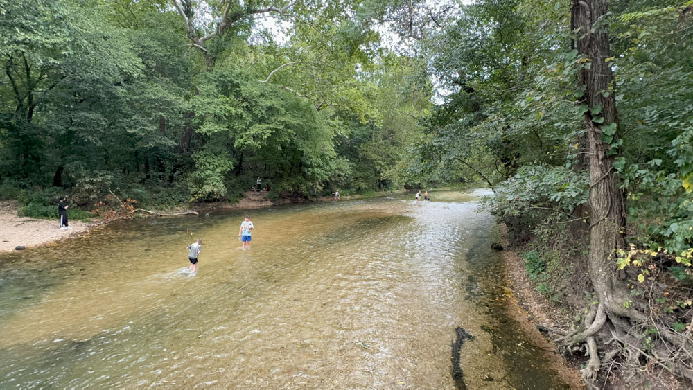 This is a photo of the spring which is at the (almost) beginning of the river. We ended up here last, however. The spring water is coming up from the middle near the road.