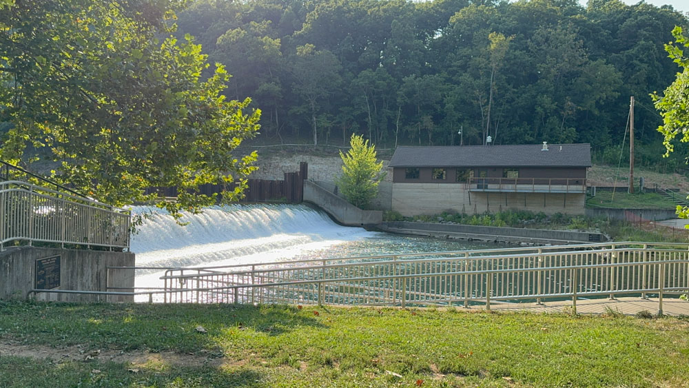 There is a pavilion across on the other side of the river at this location, with fun steps down to the water's edge. It would make a great spot for photography of folks posing.