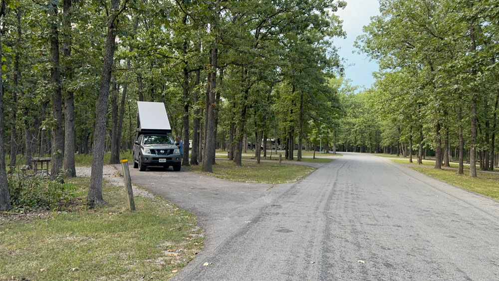 There is one campsite close to the water, but all the RV type vehicles were camped there and it was crowded. Far up a hill are the other campsites and it was much less crowded and more to our style. We did enjoy staying here and I do like people within a distance of us, but not too close, and this night's stay was just right for us.