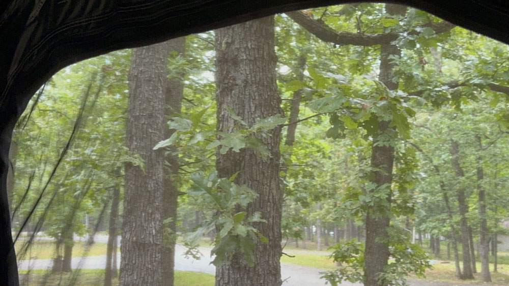 I wrote a "little diddy" while in the tent during the soft rain and took a photo out the window to go with the writing.