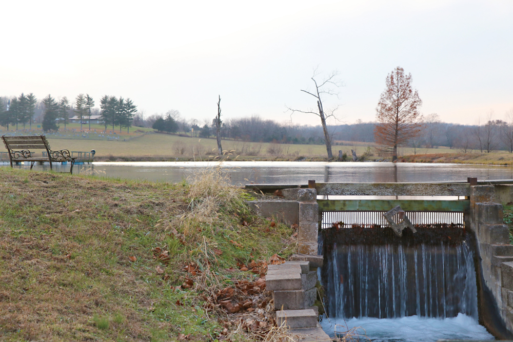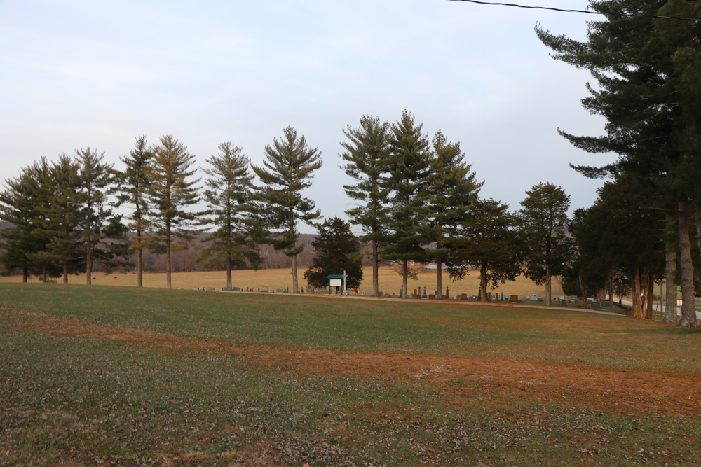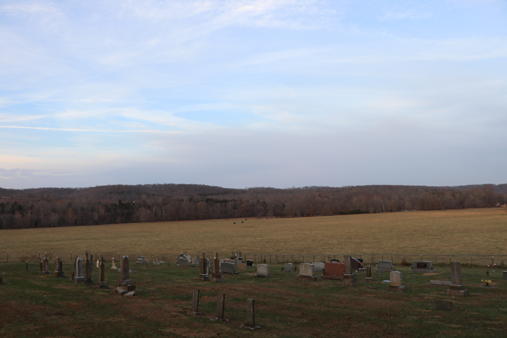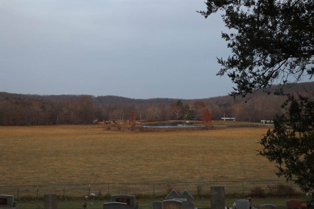 I love this photo because the lake is silver and you can see the church and cemetery on the hill.