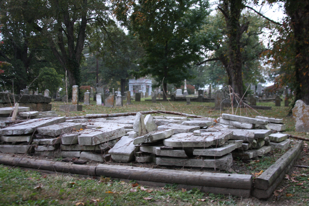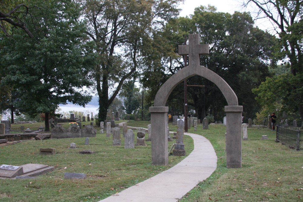 I am trying to remember why my 2010 photos contain images from the back of the cemetery, down the hill, and out to the Mississippi River. It seems to be whatever genealogy research I was doing at the time indicated that hubby's ancestor's lived on the plot of land directly behind the cemetery which faces N. Spanish Street, and we were looking at that plot from both the east and the west ends of it to see what it looked like. I have no memory now of who it was that owned that land or if my memory is just bad. It could be that we were tracing the route of the underground railroad in some story we had been told or read. It would make sense that they followed the path from the back of the cemetery in that which I have photographed. I just do not remember now.