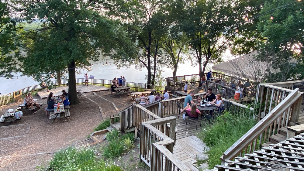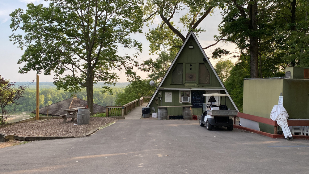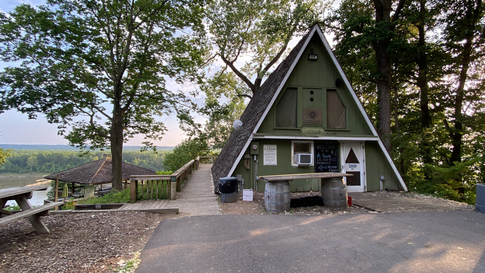 This is the A-frame as you approach and the seating is behind it overlooking the Missouri River.