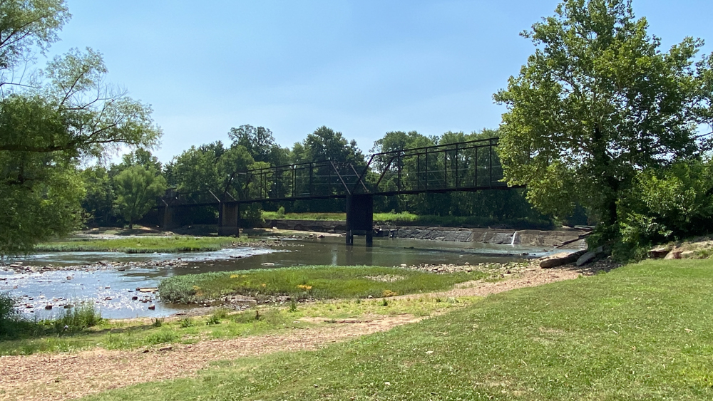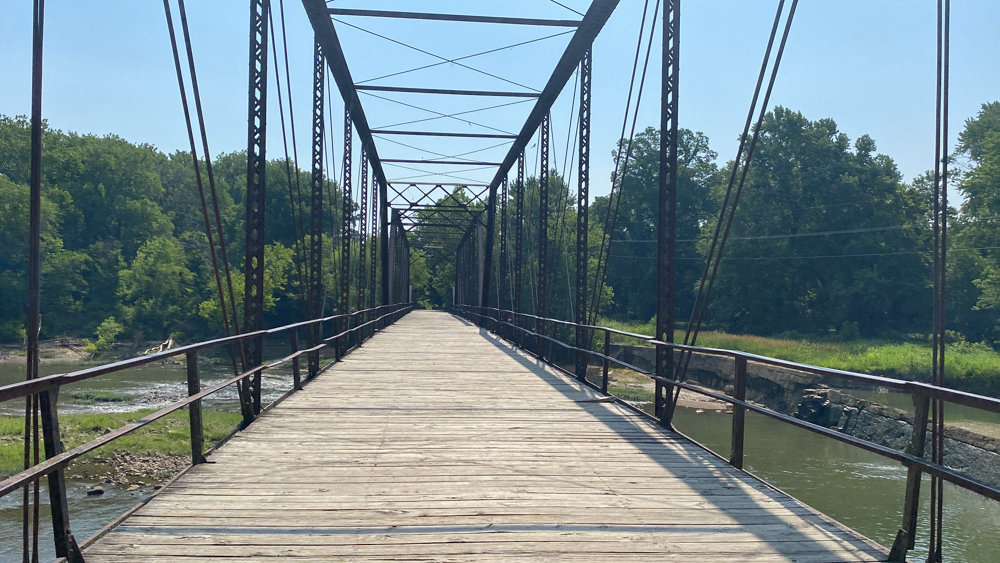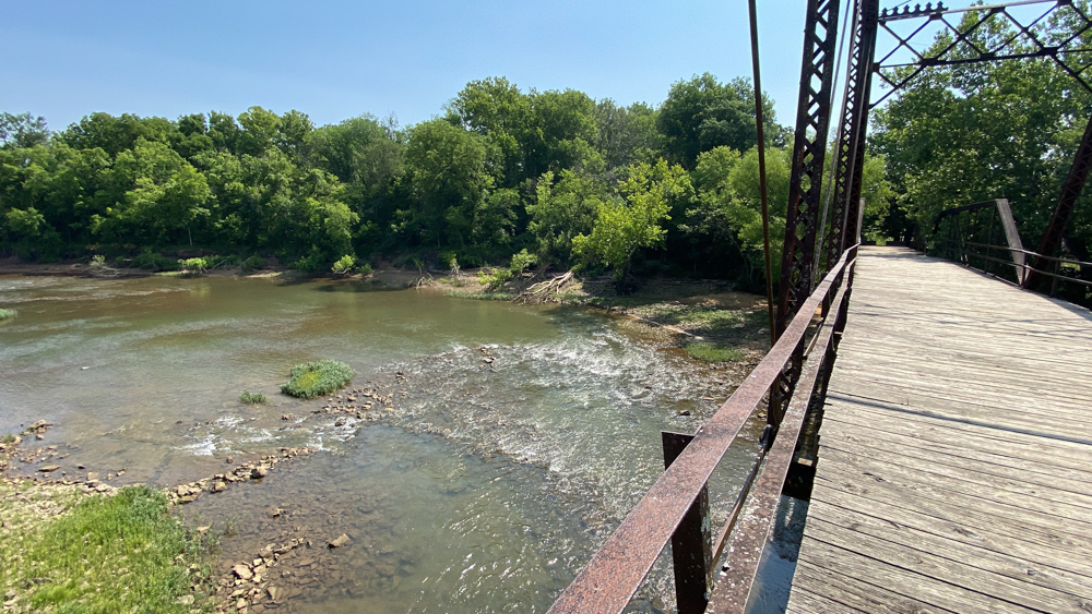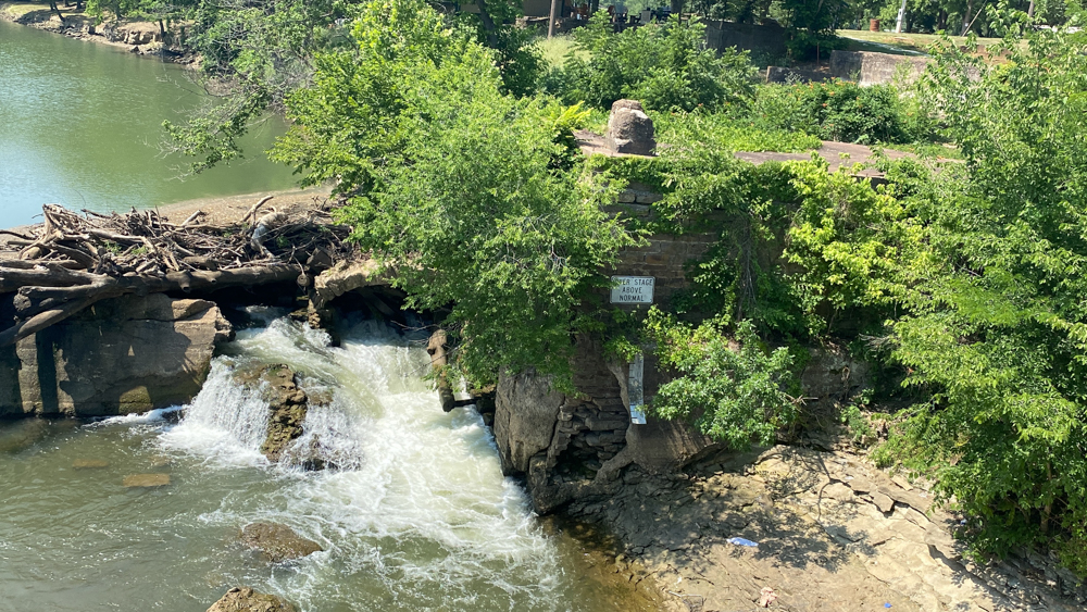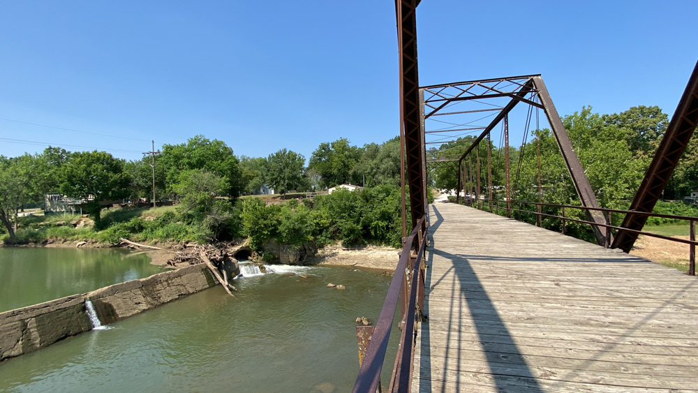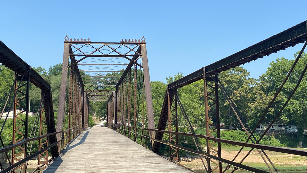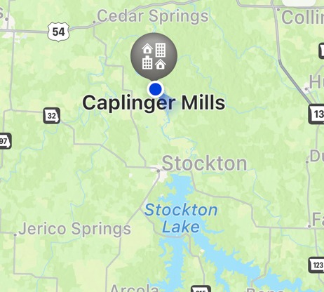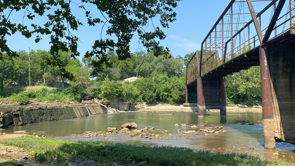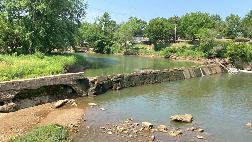 Caplinger Mill is in Caplinger Mills, Cedar County, Missouri, just about 8 miles north of Stockton Lake. It is a small community and there are vacation places to stay here. It is as if it is a little hidden gem to get away. We only visited for a short while on June 26, 2023, but could have stayed here for a few days and relaxed. If you are staying on the lake, be sure to take a drive up to visit this area. The mill is no longer in existence, but the remnants can be see where it was originally built in 1842. A log dam was replaced with this concrete dam in 1911. In 1925 a power house was built at the end of the dam, of which the remnants still exist. The bridge crosses the Sac River.
