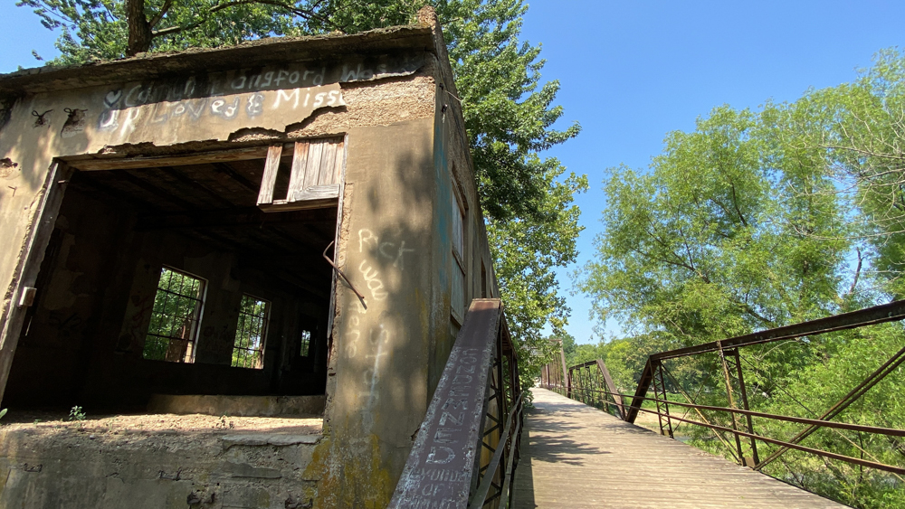 We tried to read the writing on the bridge (see the video) but here I see in this photo the word "condemned."