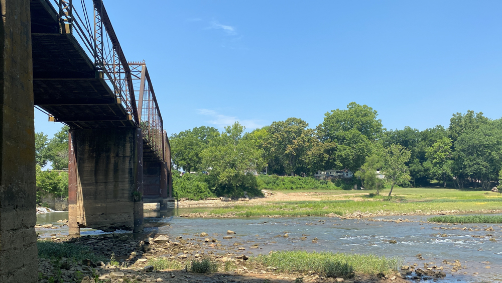 We walked down under the bridge on the power house side.