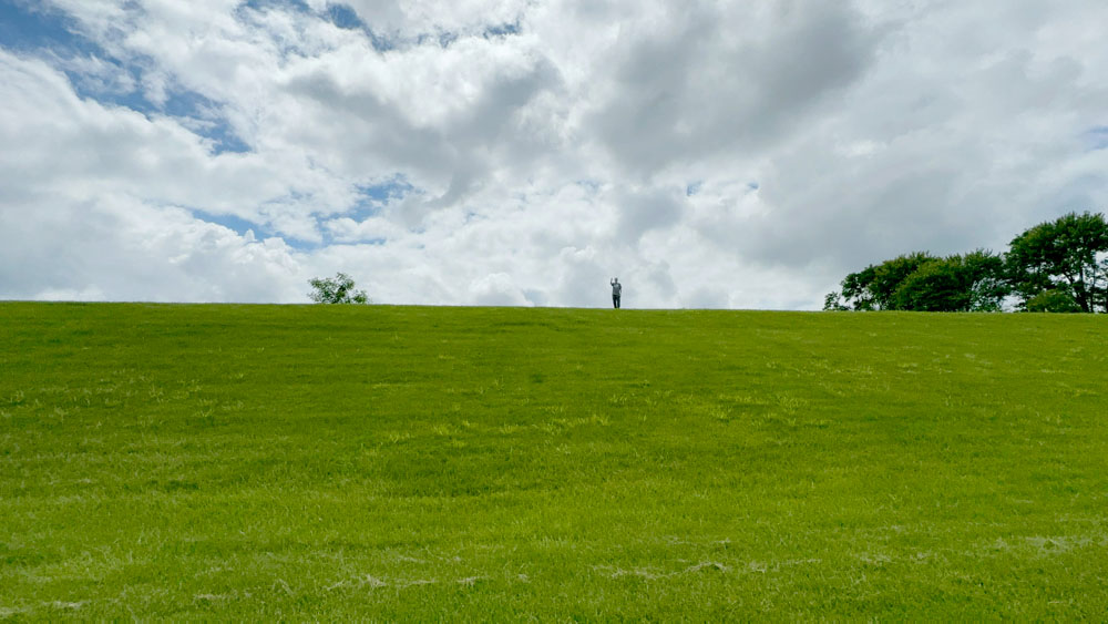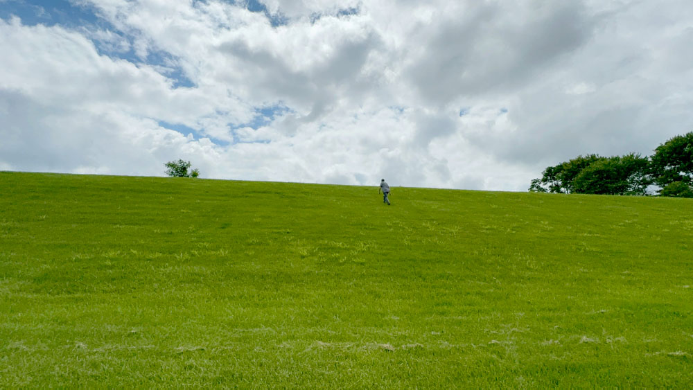 Here I am walking up the hill on the island. When at the top, I can see the lake 360 degrees.