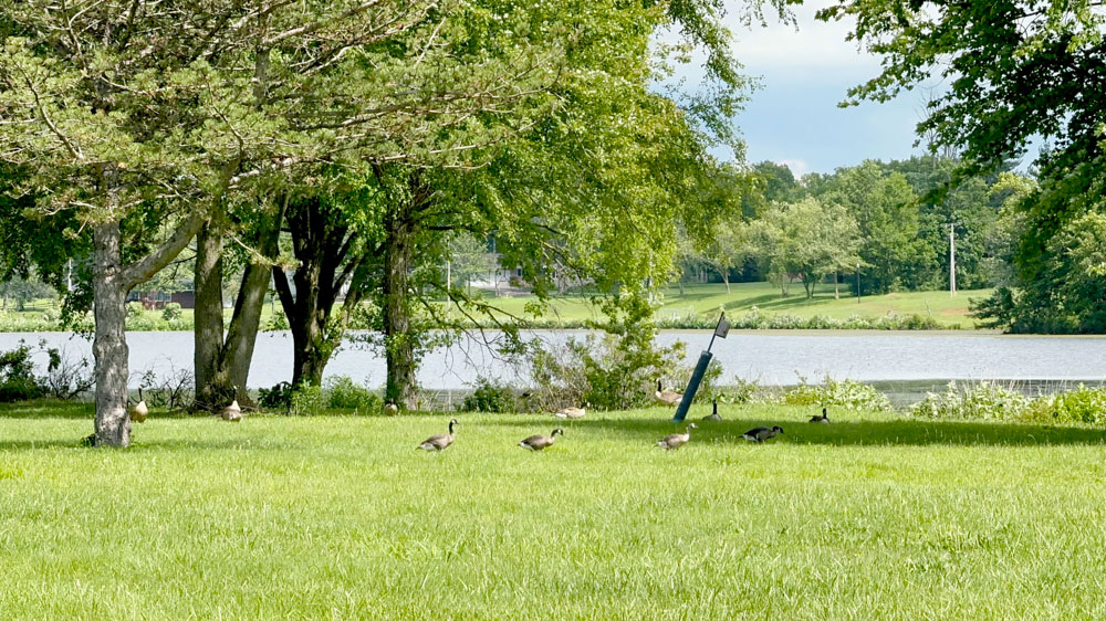 Once we reached the other side of the lake, there were geese everywhere. There was also a campsite which I captured in the above video, but did not get a photo of it. When we drove through it later to go back to the bathroom, there was a sign that said 'no tent campers.' I had never seen that before and felt cheated! We only tent camp and would not have harmed anything. So why are tent campers not wanted here?