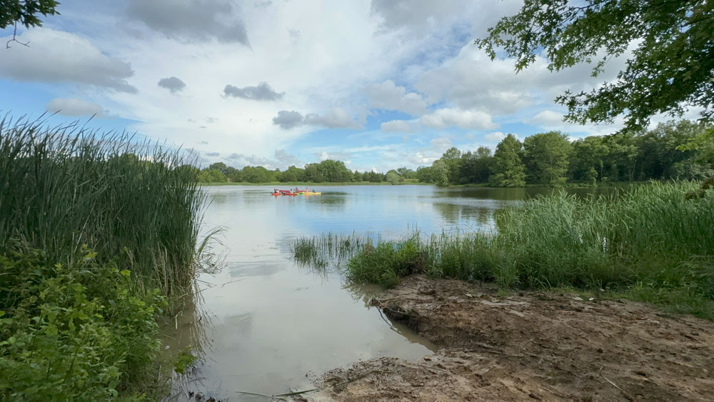 At the first parking spot was a path to a small ugy fishing pond. The path continued across the conservation area to the White Lake, but we were able to drive there instead.