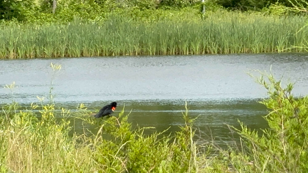I thought this was a dragonfly with blue on its wings, but I really have no idea what it is. There were some flying at both ponds.
