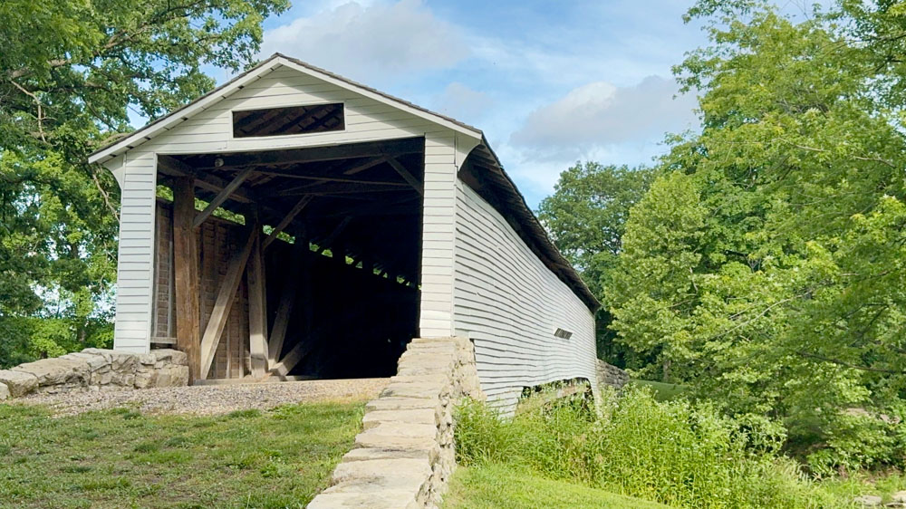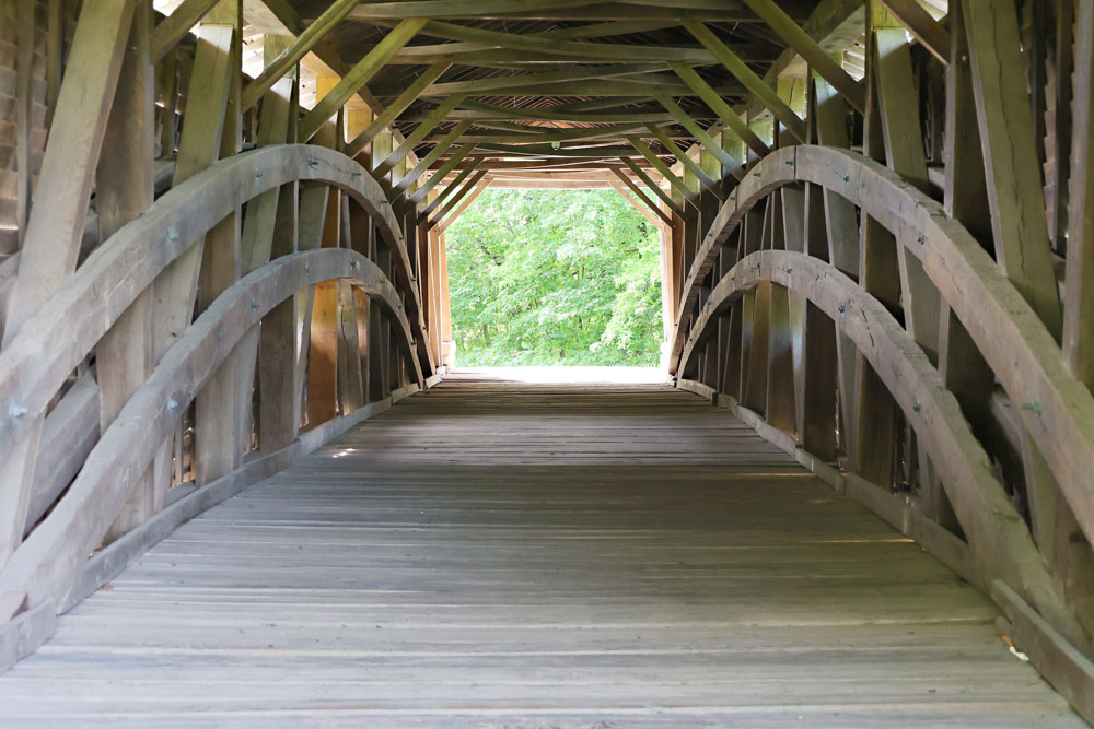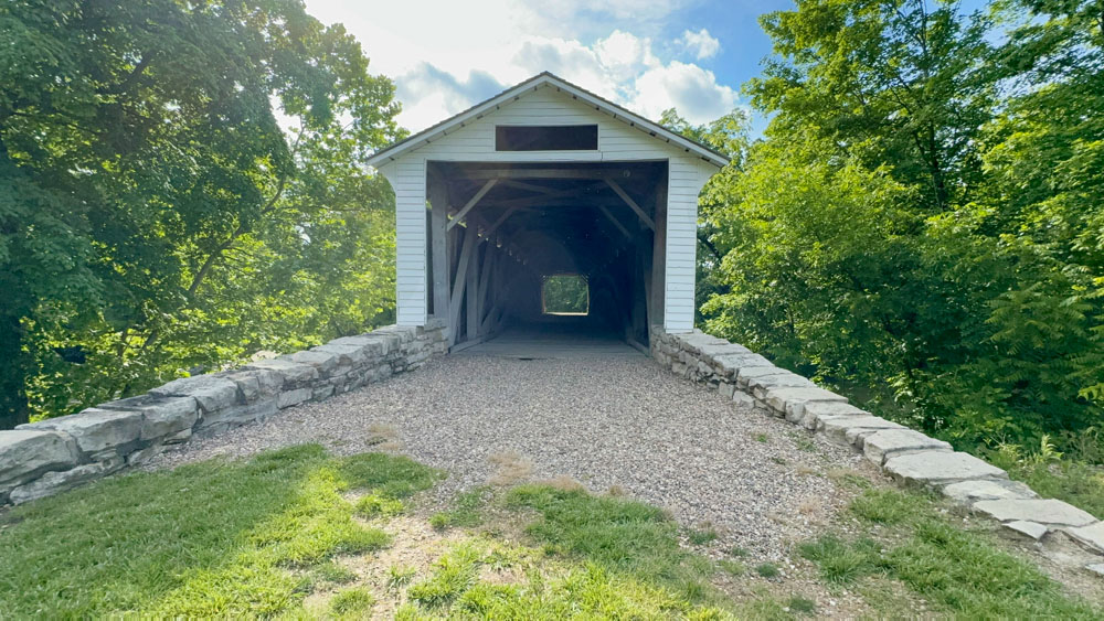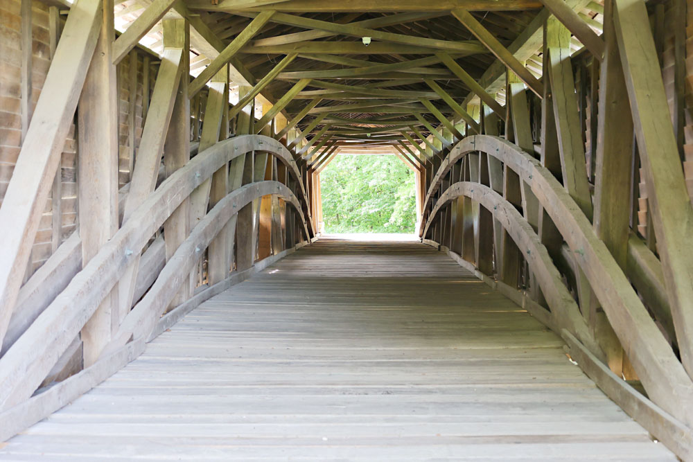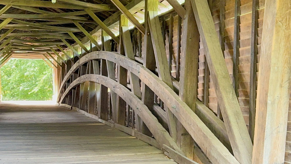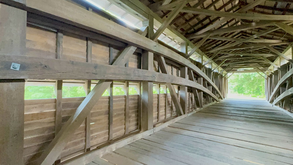 The State of Missouri is good at teaching about the different types of trusses on the covered bridges. This one has a double burr arch truss. I read all about it in the above video. I love the arches! They are photogenic.
