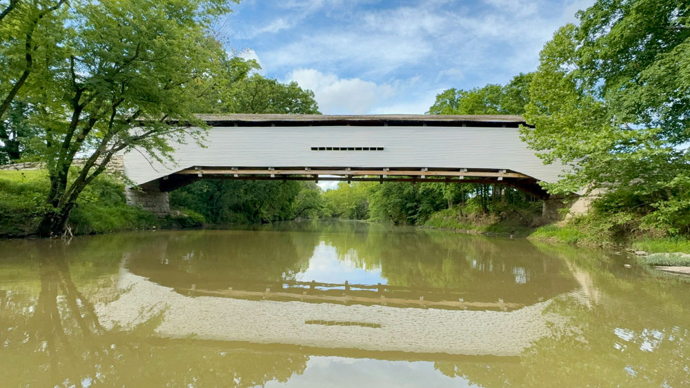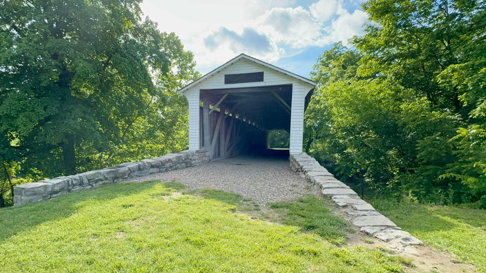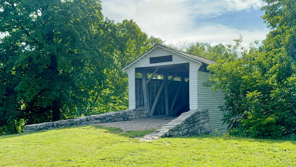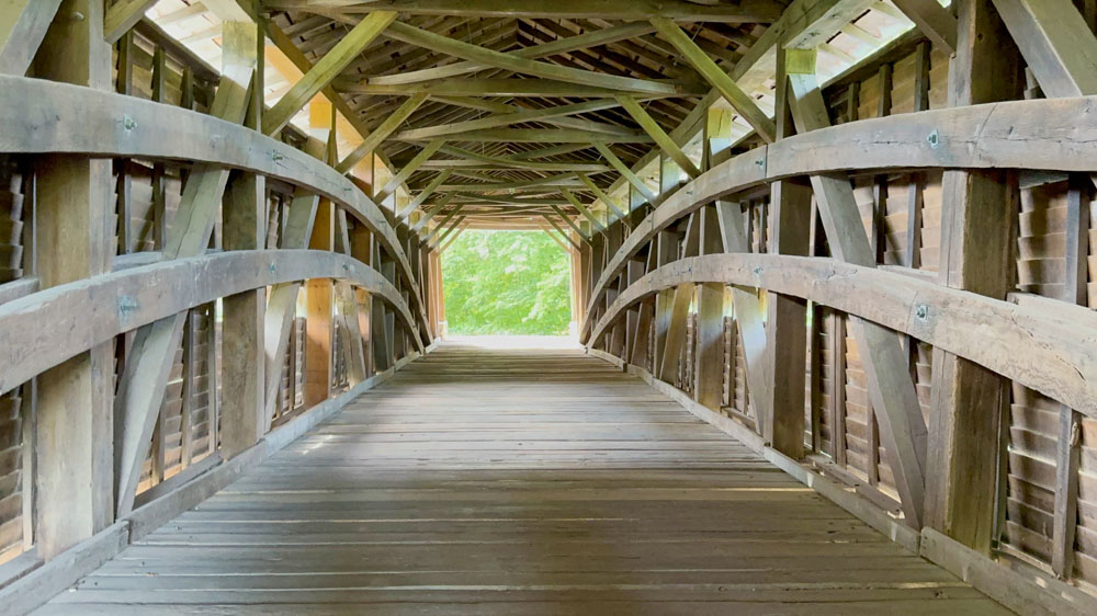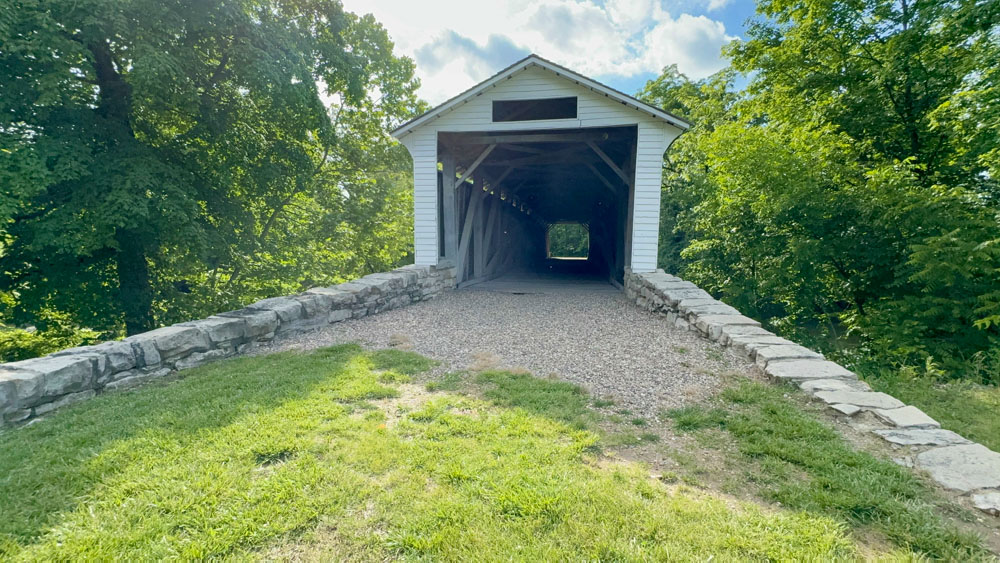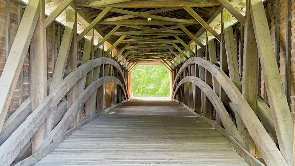 The State of Missouri is good at teaching about the different types of trusses on the covered bridges. This one has a double burr arch truss. I read all about it in the above video. I love the arches! They are photogenic.