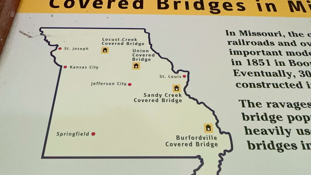 There are four covered bridges left in Missouri and this is the 4th one that I have visited. All four are Missouri State Historic Sites. The Bollinger Mill State Historic Site, Burfordville, Missouri is near me where I live in Cape Girardeau, Missouri, so I have visited it a lot. The Sandy Creek Covered bridge is a day trip for us. I visited the Locust Creek Covered bridge in 2023 with a friend, so I have been to all four!