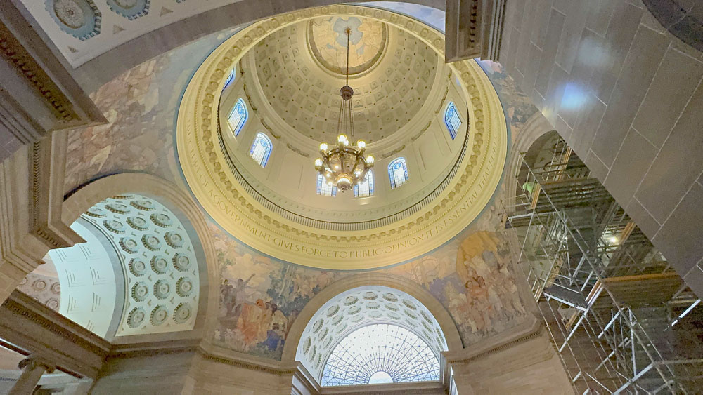 I was really drawn the the architecture, but moreso to the art. I found these paintings in the center of the capital to be of muted colors and very soft, which was a huge contrast to the Thomas Hart Benton murals.