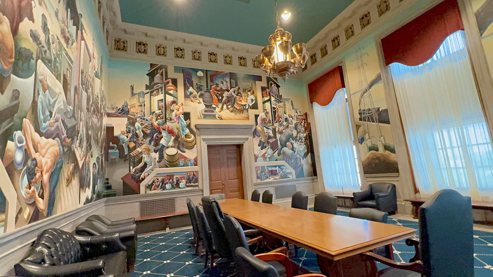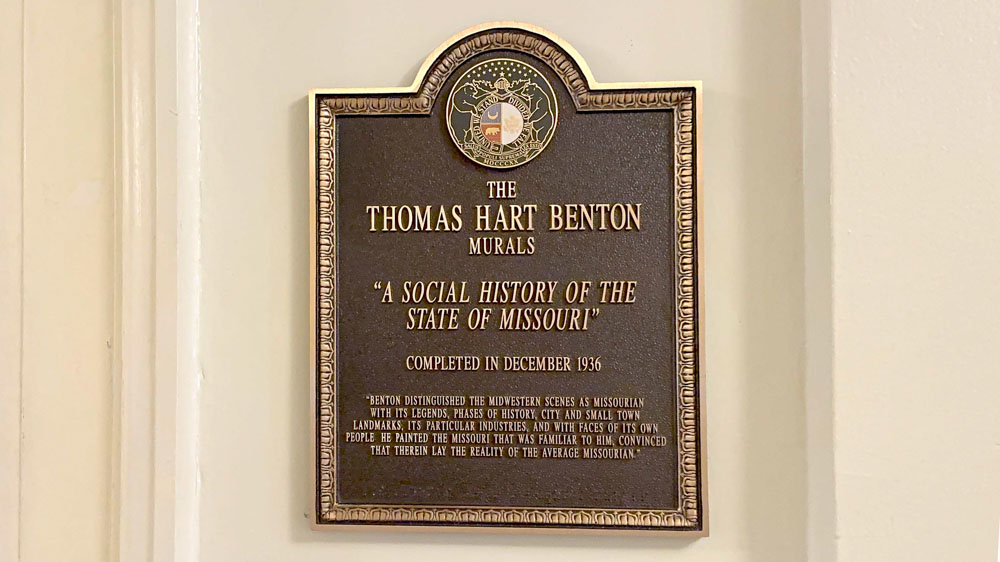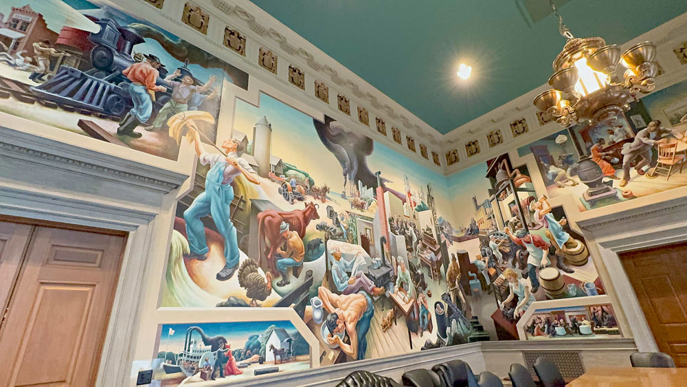 Our tour guide told us about the controversy painted into the Thomas Hart Benton mural.