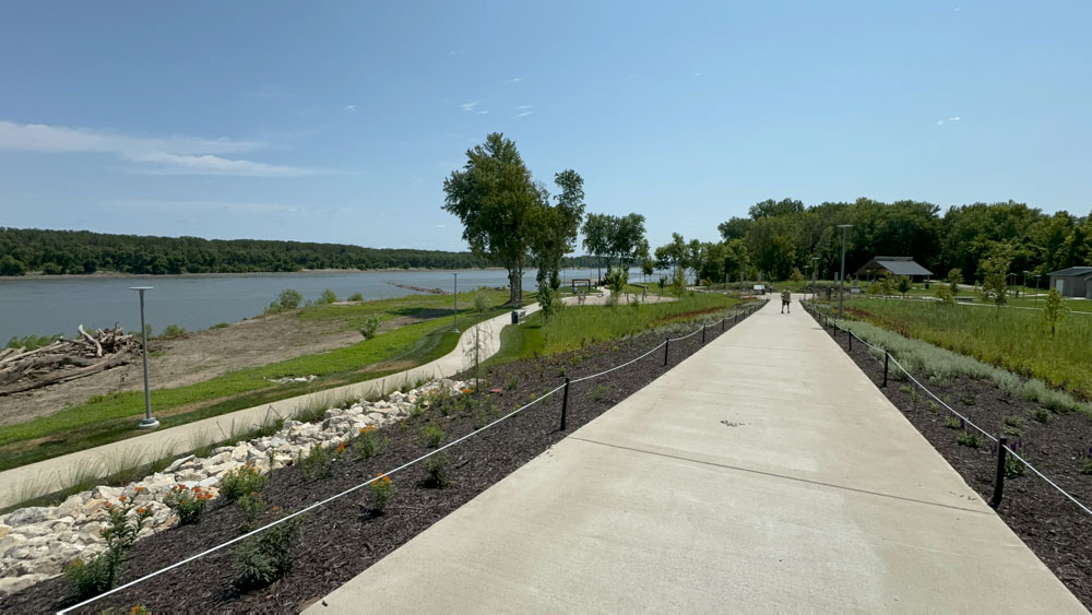 Deborah Cooper Park on Adrian's Island touts the best views in Jefferson City, especially during sunrise and sunset. I would have liked to see the sunset behind the capitol, but when we were there, there wasn't much of a sunset so I did not make the effort to go back. My feet were hurting bad by this point in the day of walking, so I limited myself to the end of the walkway and let hubby walk around some while I sat.