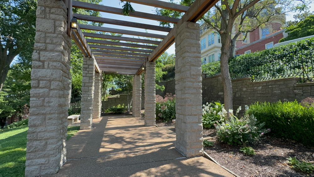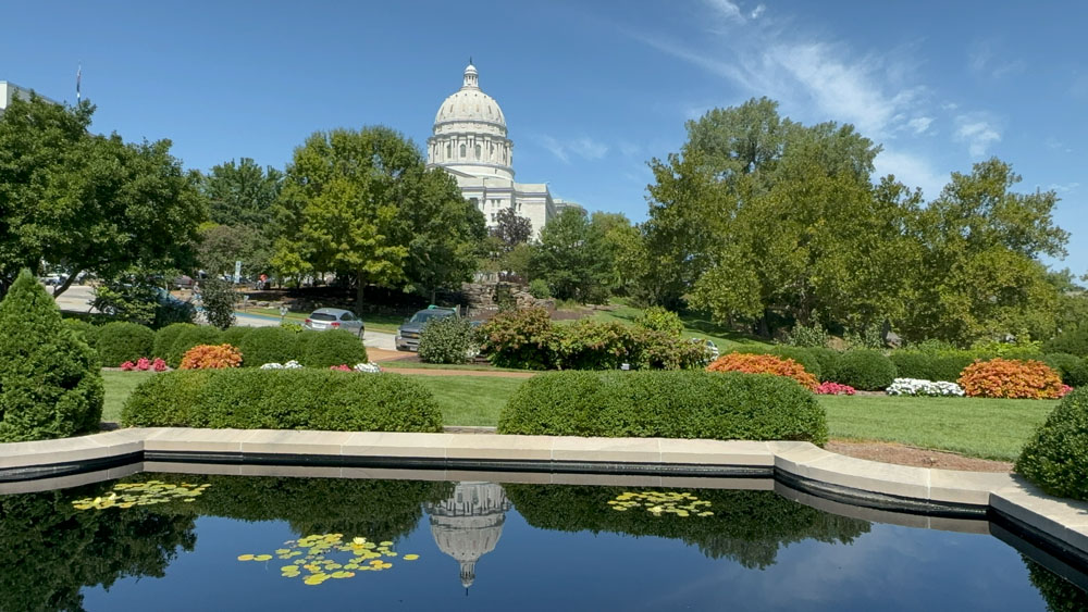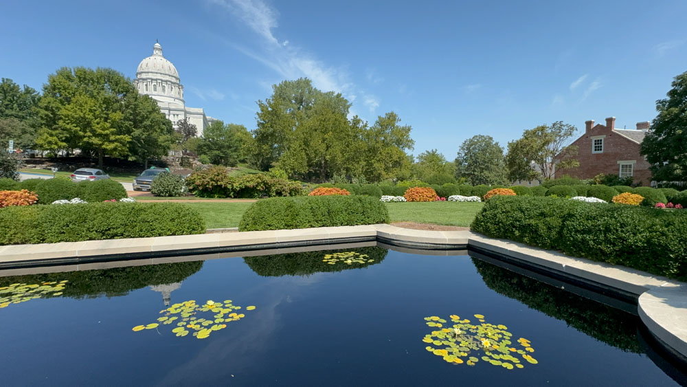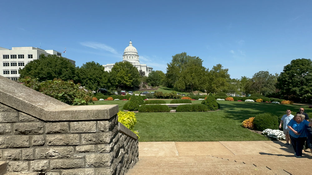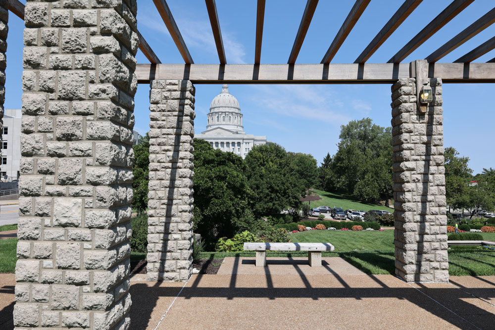 Just across the street from the Missouri State Capitol is the Carnahan Memorial Garden which is in memory of Governor Mel Carnahan who was the 51st governor of Missouri from 1993 until his death in 2000. It is located next to the Governor's Mansion. It is my understanding that the current Governor walks to the Capitol every day, so he probably passes through this garden. The garden was built in the late 1930s, but was renamed after Governor Carnahan's death.