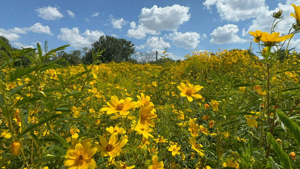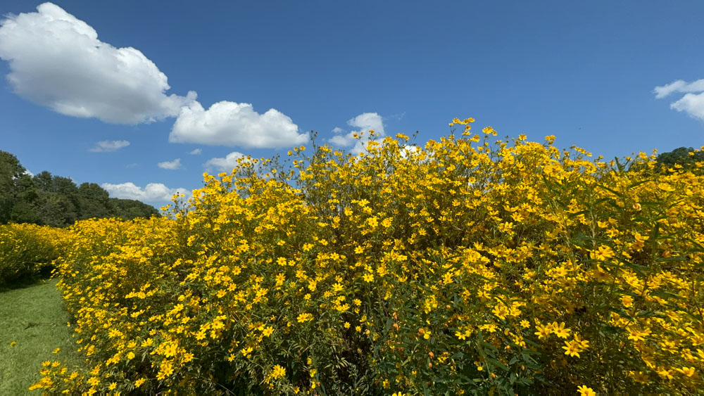 This photo shows the two yellow flowers that were in the fields. They were Bidens Aristosa and Partidge Pea Flower. I did by some Aristosa seed as I have never had that before, and I bought another flower seed as well that they said was a short variety as I a really looking for short things in my garden.