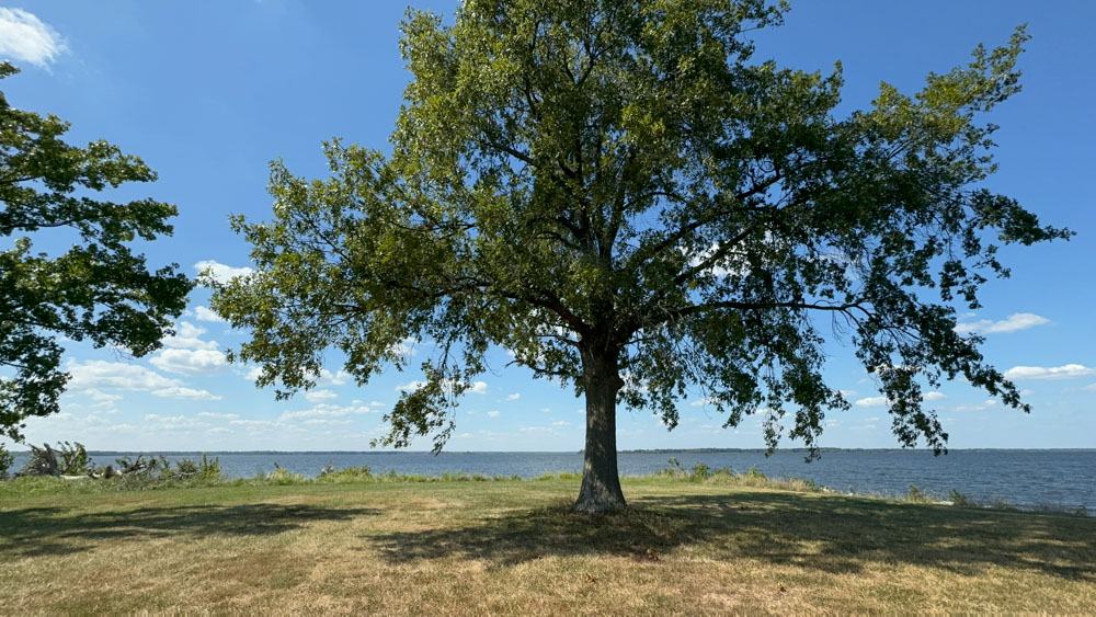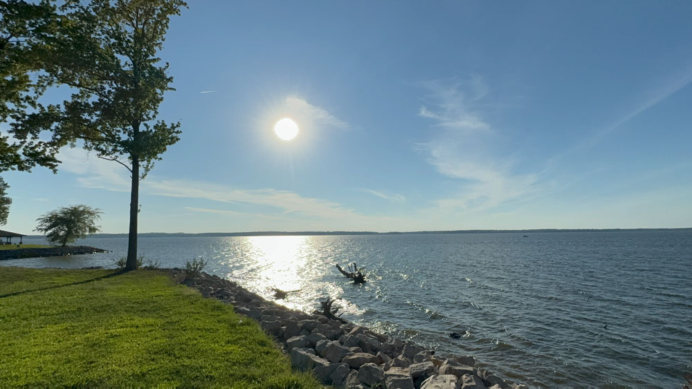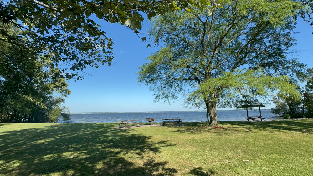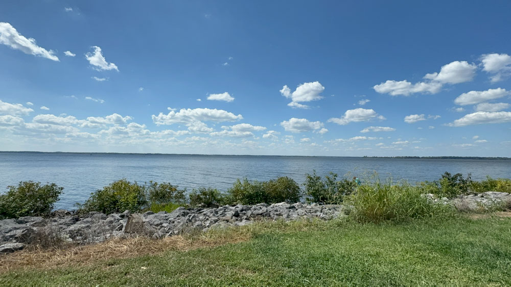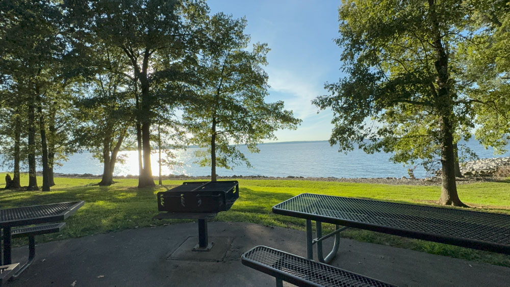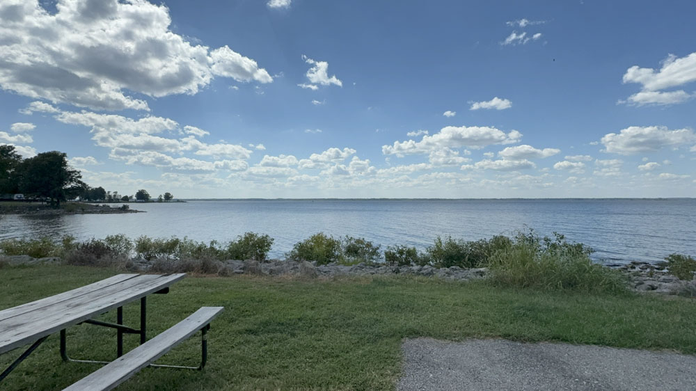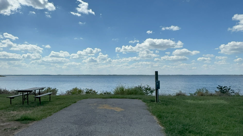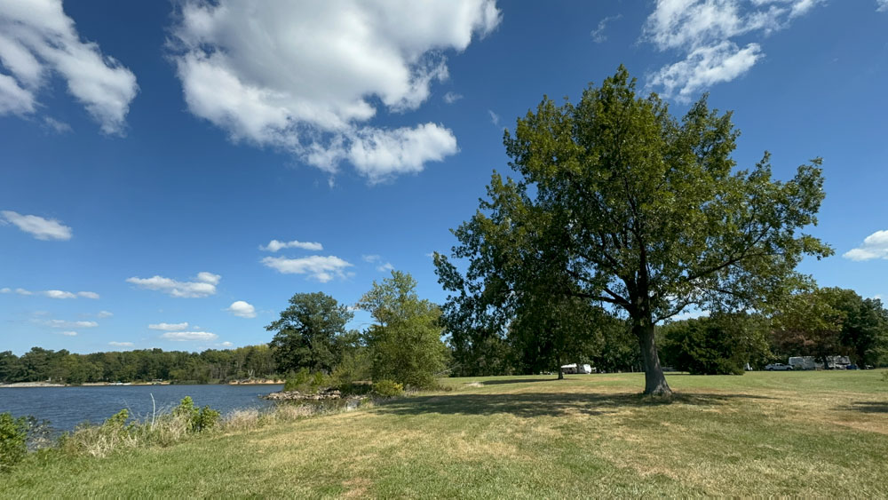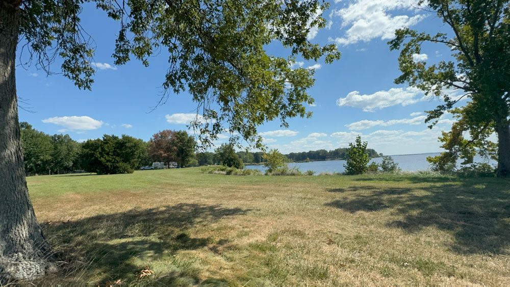 On September 2, 2024, which was Labor Day Monday, we traveled all around Rend Lake. We started with Wayne Fitzgerrell State Park. There is a resort in the park, but it appeared closed to us, and the grass even overgrown. We went down a lot of the campsite loops and at the end of each was a turn around loop with views of the lake. Now THESE are the camping spots to have, being right next to the lake.
