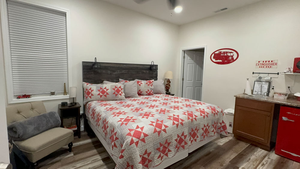 We stayed in the Firehouse room that was hosted by Hermann Crown Suites.