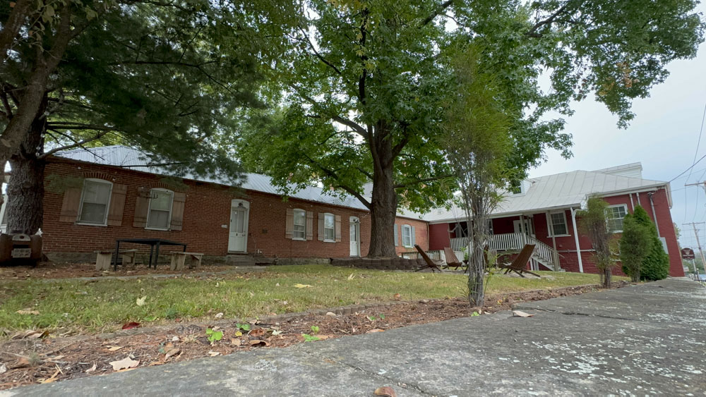 The next morning I filmed again walking down the street. This is looking at the Hermann Crown building with the 1837 Bar & Grill in the alley, but our place was across the street in the building with the pillars.