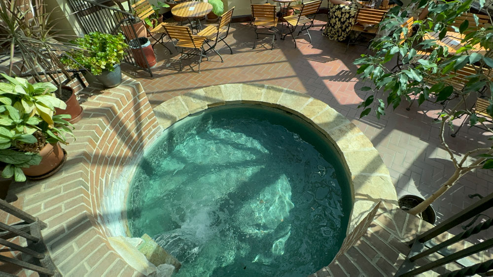 We also walked around the Black Shire Distillery and he said 'no' again. Then we sat down at the fountain at the Hofgarten and planned our next thing to visit. The Hofgarten is a small corner garden.