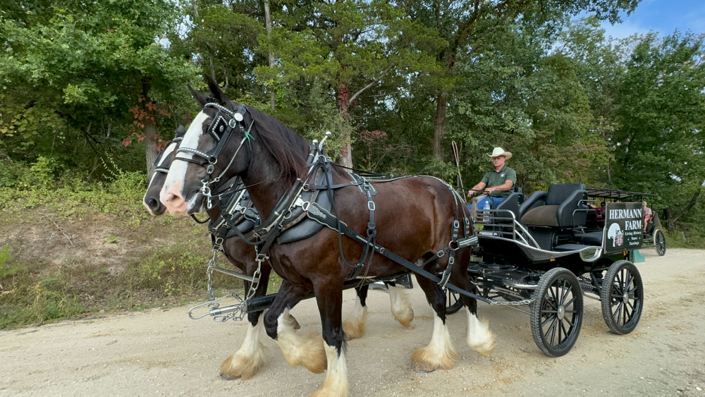 We started our day at the Hermann Farm distillery building where we boarded our horse-drawn buggy (the below larger one).