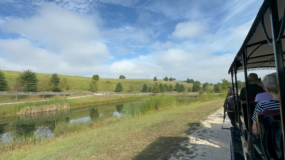 They took us clear across the farm to the front end of the property near Highway 100. It was a short trip, but we were treated to some educational talk over the microphone.