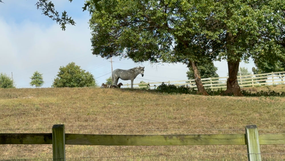 This was an old horse surrounded by goats that the previous owners sold with the farm.