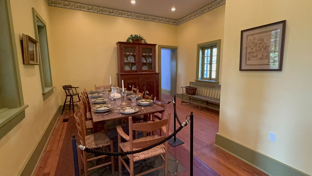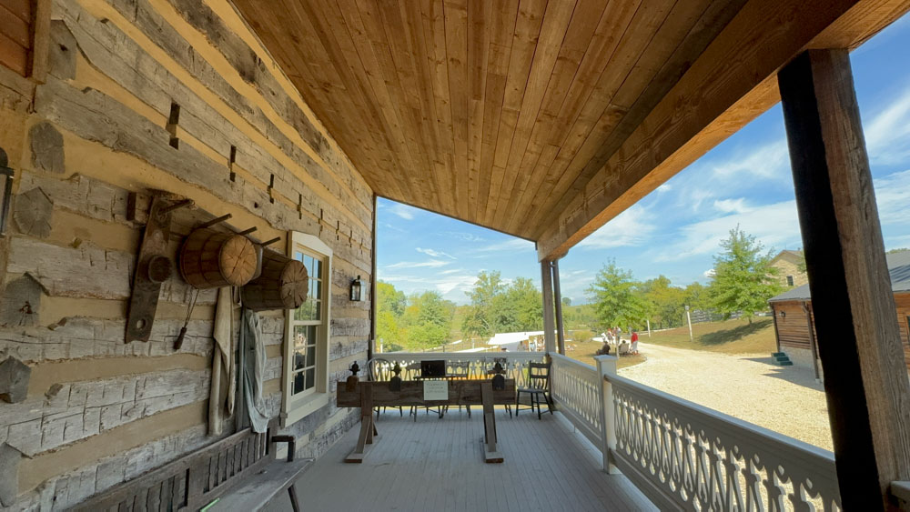 This is from the back porch of the Rasche House overlooking the Spring House, and behind it the Distillery, and to the left the Barrel Barn.